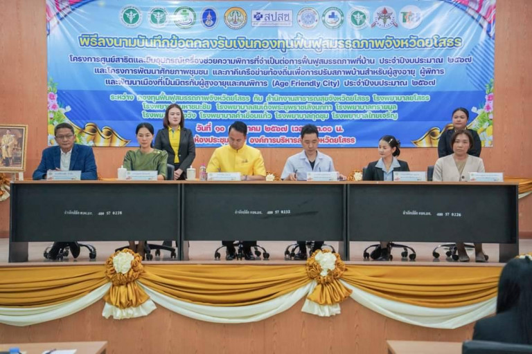 วันที่ 10 ก.ค.67 เวลา 13.00 น. นายวิเชียร สมวงศ์ นายกองค์การบริหารส่วนจังหวัดยโสธร เป็นประธาน พิธีลงนามบันทึกข้อตกลงรับเงินกองทุนฟื้นฟูสมรรถภาพจังหวัดยโสธร ประจำปีงบประมาณ 2567 ที่ห้องประชุมสีเงิน องค์การบริหารส่วนจังหวัดยโสธร โดยมีพันโท ไทย ไชยสอง , นางเบญจพร โคตรสมบัติ รองนายกองค์การบริหารส่วนจังหวัดยโสธร ร่วมลงนามบันทึกข้อตกลงกับ โรงพยาบาลยโสธร , โรงพยาบาลสมเด็จพระยุพราชเลิงนกทา , โรงพยาบาลมหาชนะชัย , โรงพยาบาลทรายมูล , โรงพยาบาลค้อวัง , โรงพยาบาลคำเขื่อนแก้ว , โรงพยาบาลกุดชุม , โรงพยาบาลไทยเจริญ ในการจัดทำบันทึกข้อตกลงรับเงินกองทุนฟื้นฟูสมรรถภาพจังหวัดยโสธรในครั้งนี้และได้มีมติอนุมัติงบประมาณสนับสนุนการดำเนิน โครงการให้กับสำนักงานสาธารณสุขจังหวัดยโสธร และโรงพยาบาล จำนวน 8 แห่ง รวม 9 โครงการ เป็นเงินทั้งสิ้น 1,574,900 บาท