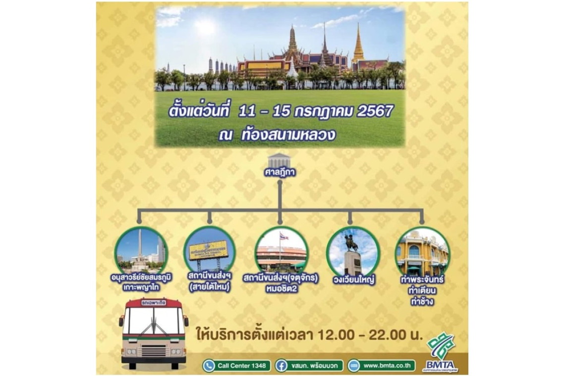 องค์การขนส่งมวลชนกรุงเทพ (ขสมก.) จัดรถโดยสารเฉพาะกิจให้บริการรับ - ส่งประชาชนเดินทางมาร่วมงานมหรสพสมโภช เฉลิมพระเกียรติพระบาทสมเด็จพระเจ้าอยู่หัว เนื่องในโอกาสพระราชพิธีมหามงคลเฉลิมพระชนมพรรษา 6 รอบ 28 กรกฎาคม 2567