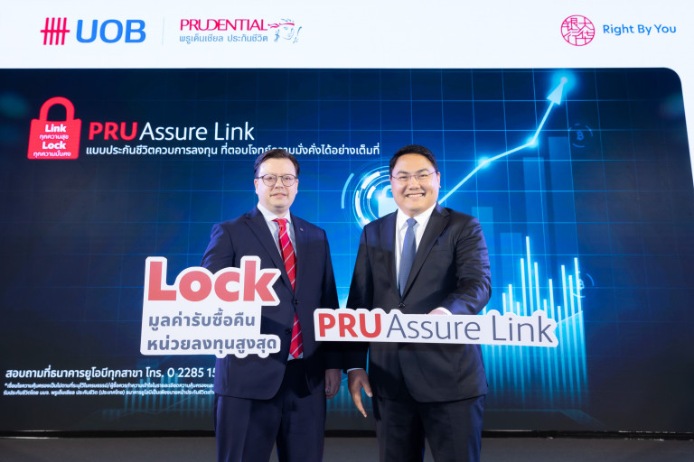 กรุงเทพ, 11 กรกฎาคม 2567 - ธนาคารยูโอบี ประเทศไทย และ พรูเด็นเชียล ประเทศไทย พันธมิตรธุรกิจด้านแบงก์แอสชัวรันส์ระดับภูมิภาคอาเซียนของธนาคาร เมื่อเร็วๆนี้ เปิดตัว PRUAssure Link แผนประกันชีวิตควบการลงทุนแรกในประเทศไทย ที่มอบความคุ้มครองโดยคำนวณจากมูลค่ารับซื้อคืนหน่วยลงทุนสูงสุดตลอดอายุสัญญา เพื่อปกป้องและเพิ่มพูนความมั่งคั่งให้แก่ลูกค้า