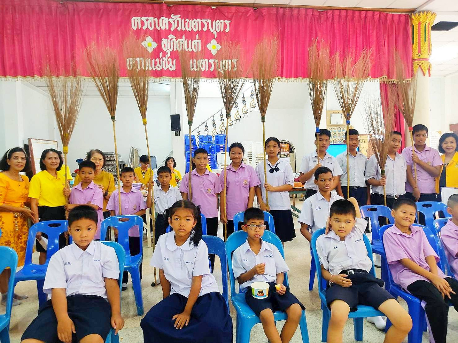 ผู้ใหญ่บ้าน-ผู้ช่วยฯ ชมรมผู้สูงอายุบ้านวัดไทรม้าเหนือ เมืองนนทบุรี มอบทุนการศึกษา -มอบเงินมูลนิธิ รพ.พระนั่งเกล้า พร้อมสนับสนุนอุปกรณ์ทำความสะอาดโรงเรียน และปลูกต้นไม้ริมเขื่อน เนื่องในโอกาสวันเฉลิมพระชนมพรรษา พระบาทสมเด็จพระเจ้าอยู่หัว รัชกาลที่ 10 วันที่ 28 กรกฎาคม 2567