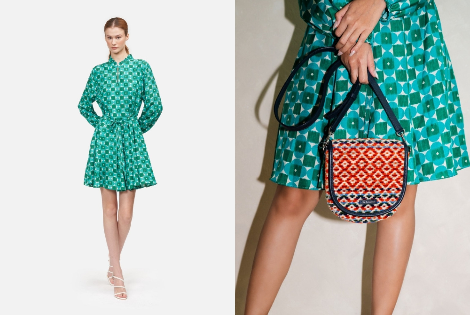เริ่มกันที่ลายผ้าสุดไอคอนิกลายแรก House on The Klong II ซึ่งเป็นซีรีส์ลายผ้าสุดเอ็กซ์คลูซีฟที่เปิดตัวกันไปเมื่อปี 2023 โดยรุ่นแรกได้แรงบันดาลใจมาจากบ้านไทยริมน้ำ ส่วนปีนี้ จิม ทอมป์สัน นำเสนอลวดลาย House on The Klong II อินสไปร์มาจากแผ่นไม้แกะสลักในบ้านจิม ทอมป์สัน รวมถึงพืชพรรณหลากหลายชนิดในสวนรอบบ้านและบ่อปลาคาร์ฟแสนสงบ ลายปรินต์ House on The Klong II อยู่บนหลายไอเทม ทั้งเดรสยาวคอปกผูกเอวที่สามารถนำมาแมตช์ดัดแปลงเป็นเสื้อคลุมช่วยเพิ่มเลเยอร์ให้ลุคดูมีลูกเล่นมากขึ้น