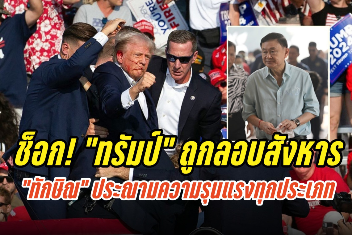 เมื่อวันที่ 14 กรกฎาคม 67 นายทักษิณ ชินวัตร อดีตนายกรัฐมนตรี โพสต์ข้อความผ่านแอปพลิเคชั่นเอ็กซ์ (x) ถึงกรณีมือปืนพยายามลอบสังหาร นายโดนัลด์ ทรัมป์ อดีตประธานาธิบดีสหรัฐ และตัวแทนพรรครีพับลิกัน ในการชิงตำแหน่งประธานาธิบดีสหรัฐปลายปีนี้ ขณะอยู่บนเวทีปราศรัย ที่เมืองบัตเลอร์ ในรัฐเพนซิลเวเนีย ว่า I am shocked to learn about the assassination attempt on President Trump.