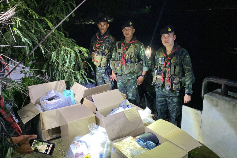 จากการตรวจสอบของเจ้าหน้าที่ทหาร-ตำรวจ พบลังกระดาษบรรจุอุปกรณ์อิเล็กทรอนิกส์และของอุปโภคบริโภค ประกอบด้วย 1.ซีพียู คอมพิวเตอร์ 2 เครื่อง 2.จอคอมพิวเตอร์ 4 เครื่อง 3.แบตไฟสำรอง 2 เครื่อง 4.อุปกรณ์ เสริม(คีย์บอร์ด เม้าท์ เร้าเตอร์) 2 ลัง และ 5. สิ่งอุปโภคบริโภค จำนวน 7 ลัง