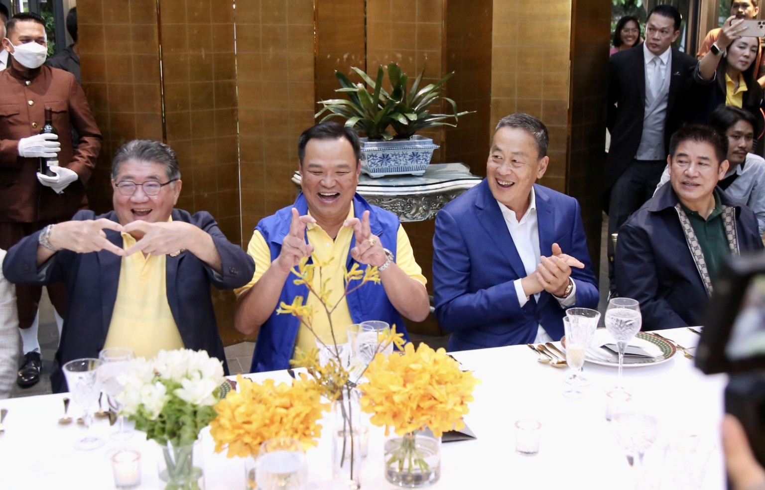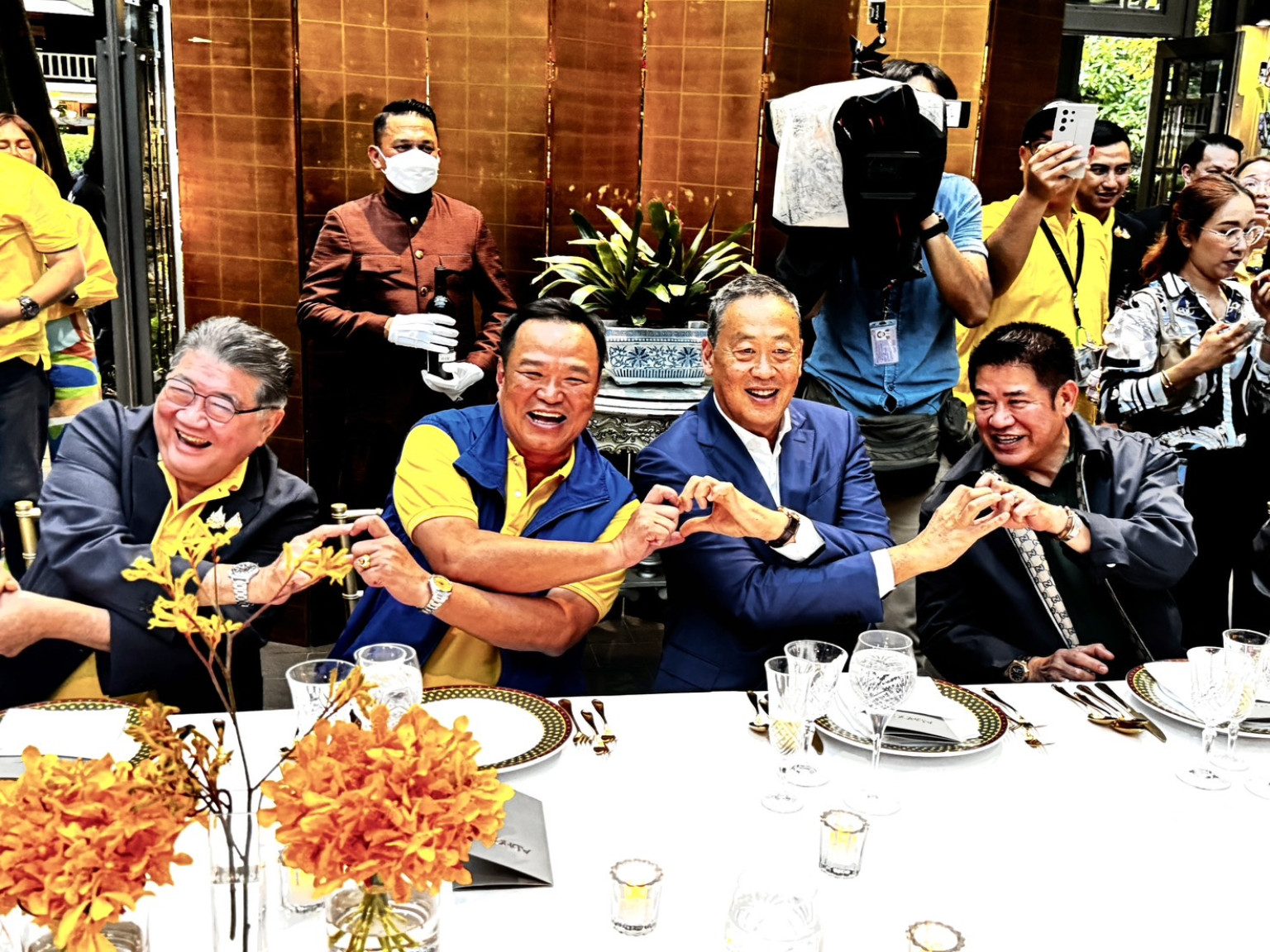 ผู้สื่อข่าวรายงานว่า ก่อนที่จะรับประทานอาหาร น.ส.แพทองธาร ได้ชวนบรรดาแกนนำทำมือสัญลักษณ์หัวใจ โดยนายกฯ ได้นำมือไปประกบกับนายอนุทิน และร.อ.ธรรมมนัสเป็นรูปหัวใจด้วย