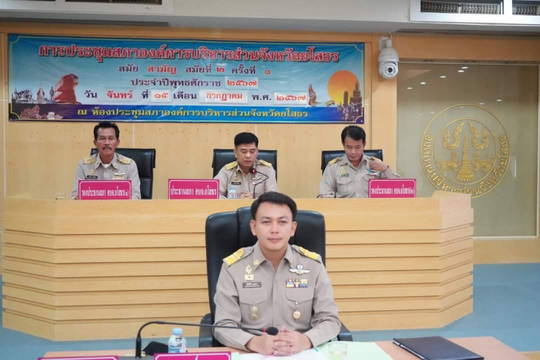 วันที่ 15 ก.ค.67 เวลา 10.00 น.ที่ห้องประชุมองค์การบริหารส่วนจังหวัดยโสธร นายอนุพงศ์ นาคสุข ประธานสภาองค์การบริหารส่วนจังหวัดยโสธร ได้เปิดการประชุมสภาองค์การบริหารส่วนจังหวัดยโสธร สมัยสามัญ สมัยที่ 2 ครั้งที่ 1 ประจำปี พ.ศ. 2567เพื่อแจ้งเรื่องการถ่ายโอนบุคลากรสังกัด สอน./รพ.สต. เพิ่มเติมประจำปีงบประมาณ พ.ศ.2568และคณะผู้บริหารองค์การบริหารส่วนจังหวัดยโสธรได้ขออนุมัติใช้จ่ายเงินบำรุงของโรงพยาบาลและหน่วยบริการสาธารณสุข ประจำปีงบประมาณ พ.ศ. 2567 และการขออนุมัติโอนงบประมาณรายจ่าย ประจำปีงบประมาณ พ.ศ.2567