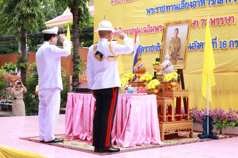 วันที่ 16 กรกฎาคม 2567 เวลา 10.00 น. พระบาทสมเด็จพระเจ้าอยู่หัว ทรงพระกรุณาโปรดเกล้าโปรดกระหม่อมให้ พลเอก ณรงค์พันธ์ จิตต์แก้วแท้ เป็นประธานเชิญอาหารพระราชทานไปพระราชทานเลี้ยงแก่นักเรียน คณะครู บุคลากรและเจ้าหน้าที่ โรงเรียนวัดราชาธิวาส เขตดุสิต กรุงเทพมหานคร จำนวน 890 คน เนื่องในโอกาสพระราชพิธีมหามงคลเฉลิมพระชนมพรรษา 6 รอบ 28 กรกฎาคม 2567 เพื่อให้นักเรียน และคณะครู รวมทั้งเจ้าหน้าที่ ได้รับประทานอาหารที่ดีมีคุณค่าตามหลักโภชนาการอันจะส่งผลให้มีสุขอนามัยที่ดี มีสุขภาพร่างกายที่แข็งแรง และมีสุขภาพจิตที่ดี สำหรับเมนูวันนี้ ประกอบด้วย ข้าวมันไก่ทอด ข้าวมันไก่ตอนข้าวหมูแดง - หมูกรอบ บะหมี่แห้งหมูแดง ข้าวขาหมู - ไข่พะโล้ และโดนัทไส้ต่าง ๆ เป็นต้น