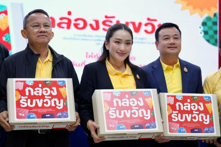 ในวันมหามงคลนี้ พรรคเพื่อไทยและภาคเอกชน จึงถือโอกาสพัฒนานโยบาย ‘ถุงรับขวัญ’ โดยยังคงตามแนวคิดการพัฒนาพื้นฐานสมอง (Brain Based Learning) ร่วมกับผู้เชี่ยวชาญในการพัฒนาองค์ความรู้ให้ตามยุคสมัย ออกมาเป็นนโยบาย ‘กล่องรับขวัญ’ ที่ภายในกล่องบรรจุสิ่งของสำหรับเป็นตัวช่วยให้ผู้ปกครองได้ใช้เสริมพัฒนาการของทารกให้เติบโตสมวัย
