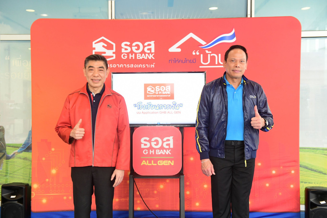 นายกมลภพ วีระพละ กรรมการผู้จัดการ ธนาคารอาคารสงเคราะห์ (ธอส.) พร้อมด้วย พันโทหนุน ศันสนาคม ผู้อำนวยการสำนักงานสลากกินแบ่งรัฐบาล ร่วมกันเปิดการให้บริการฟังก์ชัน “โรงเรียนการเงิน” ผ่านระบบดิจิทัล บน Application : GHB ALL GEN เพื่อเพิ่มความสะดวกให้กับประชาชนทั่วไปที่ต้องการขอสินเชื่อแต่ไม่สามารถแสดง