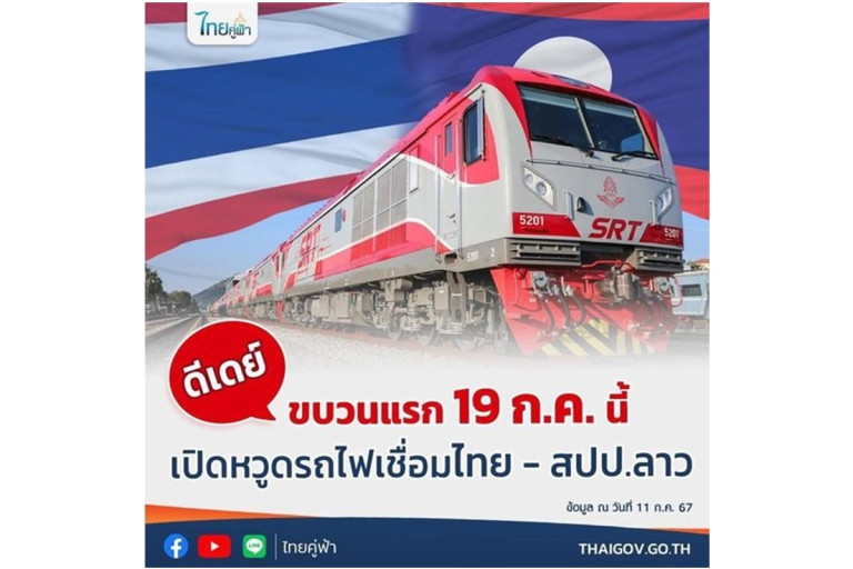 ดีเดย์ขบวนแรก 19 ก.ค.นี้ เปิดหวูดรถไฟเชื่อมไทย-สปป.ลาว หนุนยกระดับโลจิสติกส์-การค้า-ท่องเที่ยว