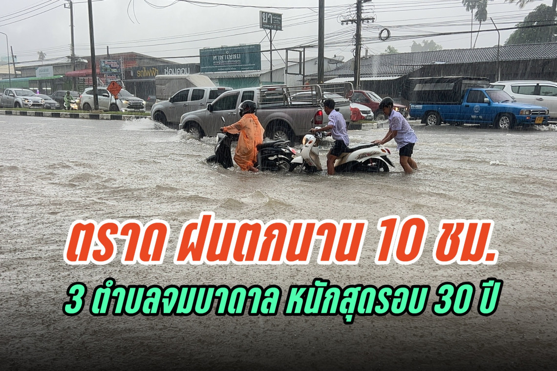 ส่วนถนนเทศบาล 3,5 และถนนสุขุมวิม ช่วงหน้าร้านเมย์ซุปเปอร์มาเก็ต เป็นพื้นที่ที่ถูกน้ำท่วมหนักที่สุด มีระดับสูงประมาณ 20-50 เซนติเมตร รถยยนต์ด้วยความยากลำบาก เนื่องถูกท่วมทุกช่องทางการจราจร ขณะที่เทศบาลเมืองตราด ได้ให้ชุดป้องกันและบรรเทาสาธารณภัย นำรถดับเพลิง มาช่วยพลักดัน เพื่อเร่งการระบายน้ำ