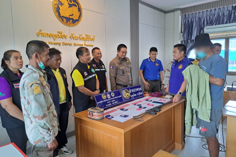 ทั้งนี้ ยังพบปืนไทยประดิษฐ์ 1 กระบอก ผู้ต้องหา อ้างว่า เพื่อนไม่มีเงินจ่ายค่ายาบ้าจึงเอาปืนมาวางค้ำประกันไว้ จากนั้นชุดจับกุมจึงได้นำตัวนายณัฐพงศ์ พร้อมของกลางยาบ้า ไปยังศูนย์ปฏิบัติการป้องกันและปราบปรามยาเสพติดอำเภอคูเมืองเพื่อสอบถามรายละเอียด