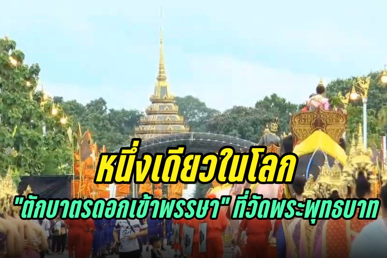 สระบุรี เริ่มแล้ว "ตักบาตรดอกเข้าพรรษา" หนึ่งเดียวในโลก ที่วัดพระพุทธบาท ปลัดมหาดไทยประธานเปิดงาน