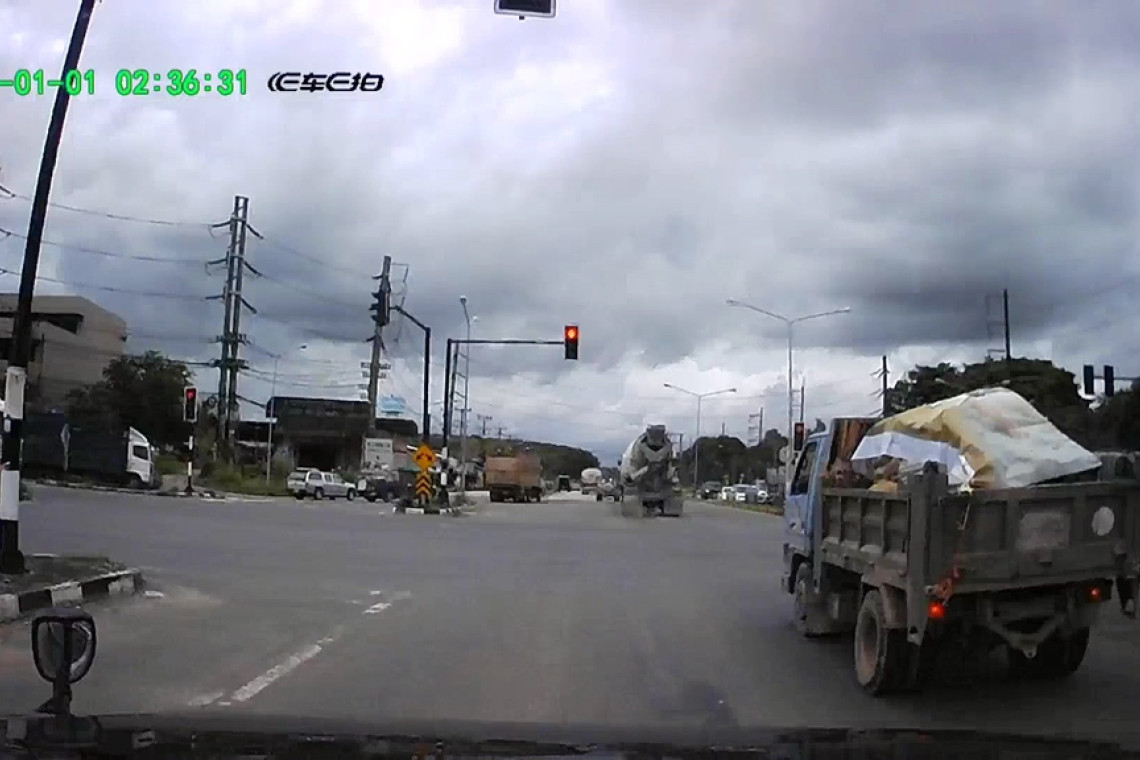 เหตุการณ์แรก ขณะที่รถเจ้าของคลิปกำลังชะลอเข้าจอดติดสัญญาญไฟแดง ได้มีรถบรรทุก 6 ล้อ ที่ขับตามหลังมา ได้พุ่งฝ่าสัญญาแดงตรงออกไป และเวลาห่างกันไม่ถึง 2 นาที ขณะที่ถนนฝั่งตรงข้ามได้สัญญาณไฟเขียว จะเห็นรถกระบะสีดำ ขับกลับรถในที่ห้ามกลับซึ่งมีป้ายสัญญาณเตือน โดยวนรถกลับไปเพื่อหวังจะเข้าไปในทางคู่ขนานตลาดผลไม้ ซึ่งตรงจุดนี้เองจะสังเกตุว่ามีหญิง 2 คน ขี่รถจักรยานยนต์ย้อนศร สวนเลนออกมา ซึ่งเป็นจังหวะที่มีรถเจ้าหน้าที่ตำรวจ ซึ่งเป็นควบคุมผู้ต้องหาขับมาจากถนนสุขุมวิทฝั่งแยกแสลง เพื่อจะเลี้ยวซ้ายเข้ามาบนถนน 317 ทำให้ต้องเบรกกระทันหันเนื่องจะชนกับรถจักรยานยนต์ ที่ขี่ย้อนศรเข้ามาตัดหน้า ส่งผลทำให้ผู้ต้องหาที่นั่งอยู่ในห้องควบคุมด้านหลัง ถึงกับหน้าคะมำหัวทิ่ม แต่หญิง 2 คนไม่สนใจ ขี่รถผ่านไปหน้าตายเฉยเหมือนไม่มีอะไรเกิดขึ้น
