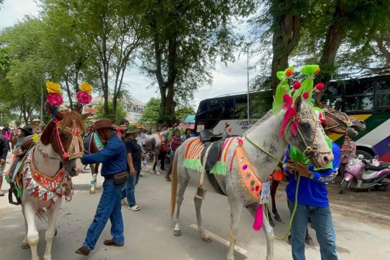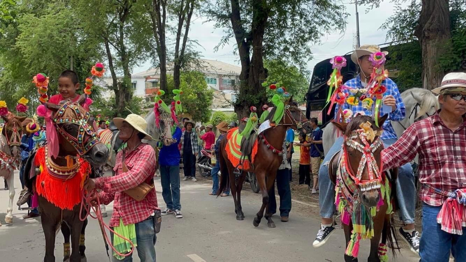 ซึ่งสมัยก่อนจะมีม้าเต้นในขบวนแห่กว่า 200 ตัว แต่ได้ลดจำนวนลงเรื่อยๆ เนื่องจากคนเลี้ยงม้าลดลง โดยงานนี้จะจัดขึ้นในช่วงวันเข้าพรรษาของทุกปี เพื่อเฉลิมฉลองอัฐิ "หลวงพ่อเล็ก" อดีตเจ้าอาวาสวัดเกาะ เป็นงานประจำปีไหว้หลวงพ่อโต เฉลิมฉลองอัฐิพระครูสุภาวินิต หรือหลวงพ่อเล็ก และพระครูวิจารณโสภณ “หลวงพ่อนาม” อดีตเจ้าอาวาสวัดเกาะ