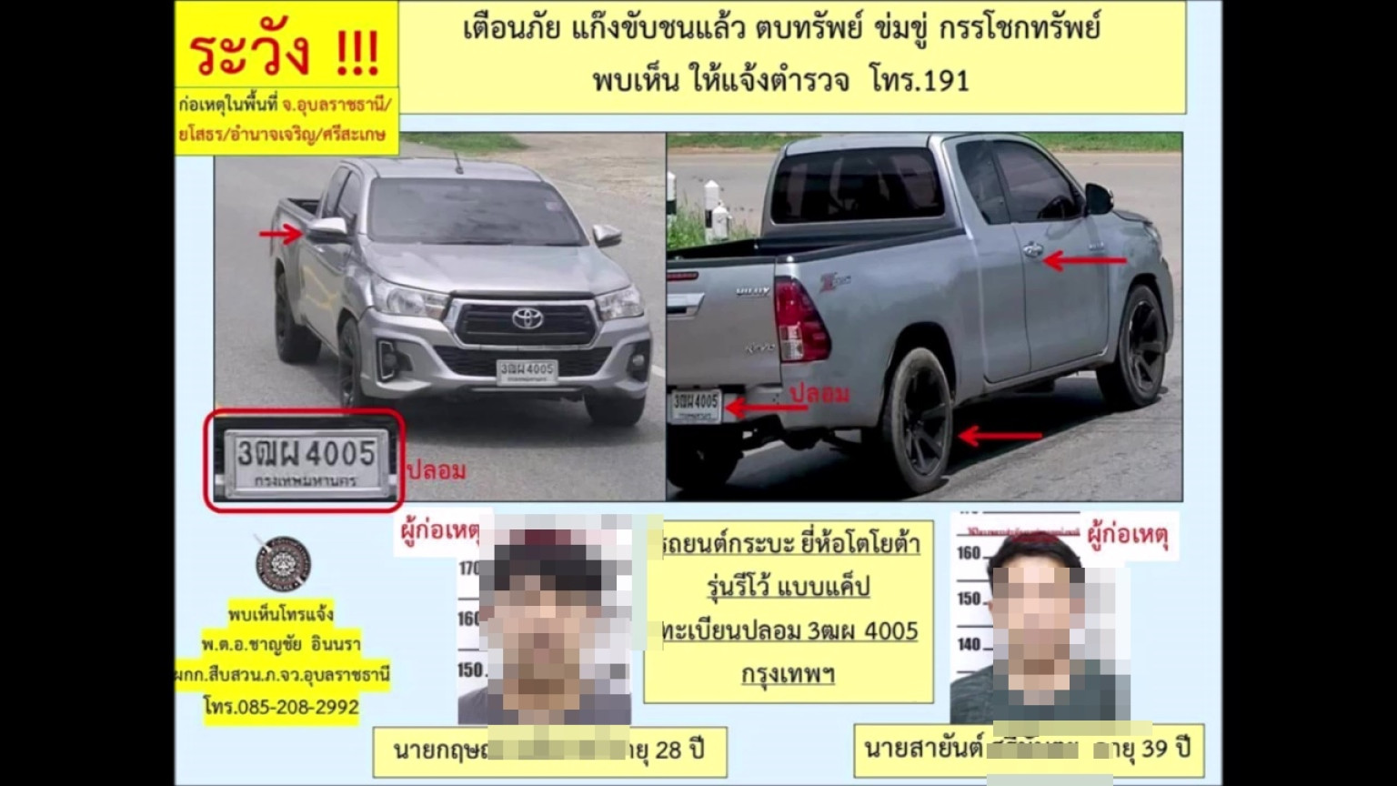 นอกจากนี้เมื่อวันที่ 6 ก.ค. 2567 เวลาประมาณ 15.30 น. ผู้เสียหายขับรถยนต์มาตามถนนศรีธาตุ-ไชยวาน ในระหว่างนั้นได้มีรถกระบะโตโยต้า รีโว่ สีเทา กทม. ขับในลักษณะวิ่งช้าๆ หยุดๆ และมีรถกระบะอีซูซุ ยกสูงอีกคันนึงวิ่งแซงปาดหน้ารถผู้เสียหาย ในลักษณะขับประกบหัว-ท้าย พร้อมขับรถเฉี่ยวชนด้านหน้ารถของผู้เสียหายจึงได้ทำการจอดรถ มีชายที่ขับรถกระบะ จำนวน 2 คน เดินลงมาหาผู้เสียหายที่รถ คนร้ายได้เรียกร้องเอาเงินค่าเสียหายที่รถชน เมื่อผู้เสียหายไม่ยอมจ่ายเงิน จึงถูกทำร้ายที่ใบหน้าพร้อมใช้ไม้ตีเข้าที่กระจกรถจนไดรับความเสียหาย และยังข่มขู่ผู้เสียหายอีก จากนั้นกลุ่มชายดังกล่าวจึงได้ขับรถหลบหนีไป