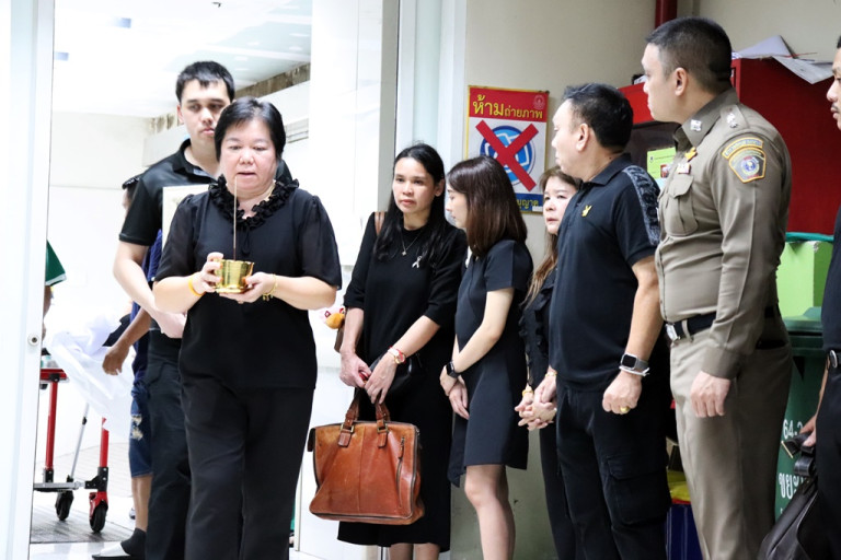 ล่าสุด เมื่อเวลา 09.30 น. วันที่ 22 ก.ค.67 ที่ตึกภาควิชานิติเวชศาสตร์ รพ.ศิริราช พล.ต.ต.ประสงค์ อานมณี ผบก.น.9 พ.ต.อ.ศุภวัช ปานแดง รอง ผบก.น.9, พ.ต.อ.อชิรวิทย์ ทองจันดี รอง ผบก.น.9, พ.ต.อ.เลิศศักดิ์ เขียมทรัพย์ ผกก.สน.ท่าข้าม และครอบครัว ของ พ.ต.ท.กิตติ์ชนม์ ฯ อาทิ พ.ต.ท.หญิงจิราวรรณ ธัญญะเจริญ อดีตเจ้าหน้าที่ตำรวจ, พ.ต.ท.หญิง ชนม์ณกานต์ จันยะรมณ์ รอง ผกก.กองอัตรากำลัง สนง.กำลังพล, ร.ต.ท.วันรัฐธ์ จันยะรมณ์ รอง สว.(สอบสวน) สภ.สำโรงใต้ จ.สมุทรปราการ พี่สาวพร้อมภรรยา และลูกชาย และญาติพี่น้อง เดินทางนำเอกสารติดต่อเข้ารับศพ ของ พ.ต.ท.กิตติ์ชนม์ จันยะรมณ์ อายุ 59 ปี รอง ผกก.ป.สน.ท่าข้าม หรือ "รองหรั่ง" ผู้เสียชีวิต โดยมีการใช้รถยนต์กระบะตำรวจในสังกัด บก.น.9 ทั้ง 10 สน. ประกอบด้วย 1.สน.ท่าข้าม 2.สน.เพชรเกษม 3.สน.แสมดำ 4.สน.บางขุนเทียน 5.สน.เทียนทะเล 6.สน.ภาษีเจริญ 7.สน.หลักสอง 8.สน.บางบอน 9.สน.หนองแขม และ 10.สน.หนองค้างพลู เพื่อมาตั้งขบวนนำร่างของ พ.ต.ท.กิตติ์ชนม์ ไปที่วัดยางสุทธาราม แขวงบ้านช่างหล่อ เขตบางกอกน้อย กรุงเทพ ฯ อย่างสมเกียรติ โดยบรรยากาศเต็มไปด้วยความโศรกเศร้า