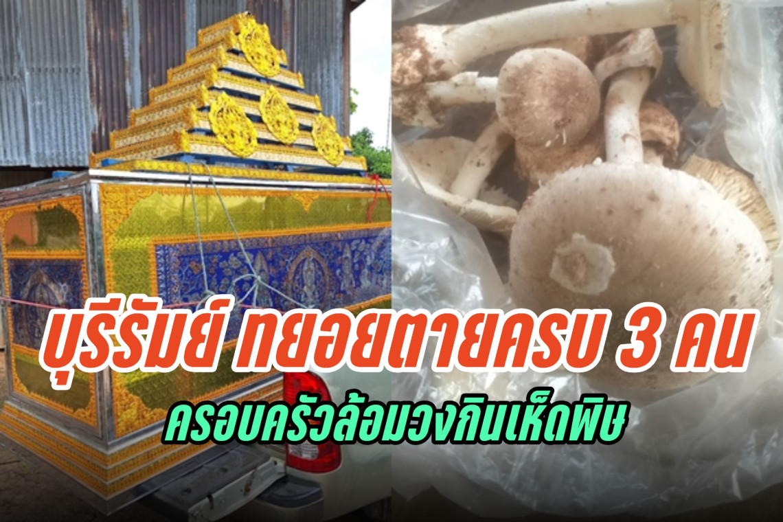 และล่าสุดเช้าวันนี้ 23 โรงพยาบาลศูนย์บุรีรัมย์ ได้แจ้งญาตินายบุญ อายุ 69 ปี พ่อนายคำพันธ์ ที่เสียชีวิตไปก่อนหน้านี้ ได้เสียชีวิตลงอีก 1 คน สรุปกลุ่มที่กินเห็ดด้วยกันมี 3 คน เสียชีวิตไปทั้งหมดแล้ว สร้างความสลดใจให้กับชาวบ้านและครอบครัวผู้เคราะห์ร้ายเป็นอย่างมาก โดยเฉพาะนางคำจันทร์ อายุ 66 ปี ภรรยานายบุญ ที่เสียชีวิตเป็นศพสุดท้าย เล่าว่า ตอนนี้สภาพจิตใจย่ำแย่แทบรับไม่ไหวแล้ว ลูกชายคนที่เสียชีวิตเมื่อวันที่19 ก.ค.ได้ฌาปนกิจศพไปเมื่อวันที่ 22 ก.ค.พร้อมกับลูกสะใภ้ที่กินด้วยกัน แต่ลูกสะใภ้ฌาปนกิจศพที่จังหวัดกาฬสินธุ์ บ้านเกิดของเขา มาถึงวันนี้มาทราบข่าวอีกว่าสามีตายลงอีก