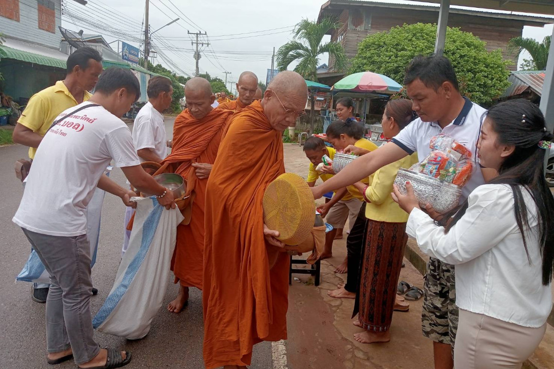 อบต.คลองขาม ร่วมกับคณะสงฆ์ อำเภอยางตลาด จังหวัดกาฬสินธุ์ จัดคาราวานบุญ โดยพระภิกษุอุปสมบทโครงการเฉลิมพระเกียรติพระบาทสมเด็จพระเจ้าอยู่หัว ออกรับบิณฑบาตถนนสายบุญทุกหมู่บ้าน นำปัจจัย ข้าวสาร อาหารแห้ง น้ำดื่ม ตั้งกองบุญช่วยเหลือผู้ยากไร้ ถวายเป็นพระราชกุศล เนื่องในโอกาสมหามงคลเฉลิมพระชนมพรรษา 6 รอบ 28 กรกฎาคม 2567