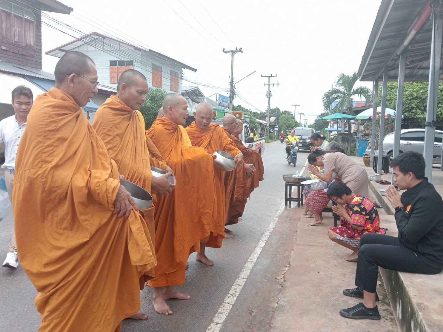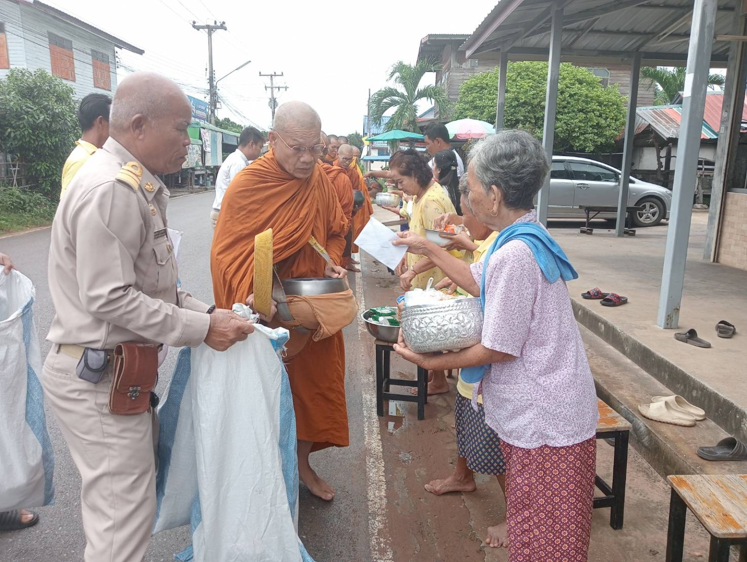 วันที่ 24 กรกฎาคม 2567 ที่ถนนสายบุญ บ้านหนองบัวหน่วย หมู่ 16 ต.คลองขาม อ.ยางตลาด จ.กาฬสินธุ์ นายวิทยา บุญตาโลก นายก อบต.คลองขาม พร้อมด้วยคณะผู้บริหาร ผู้นำชุมชน ผู้บริหารสถานศึกษา ประชาชน นักเรียน นำปัจจัย ข้าวสาร อาหารแห้ง ชุดสังฆทาน ตั้งแถวใส่บาตรพระภิกษุสงฆ์ ซึ่งหลายรูปเป็นพระภิกษุที่เข้าพิธีอุปสมบท ในโครงการบรรพชาอุปสมบท เฉลิมพระเกียรติพระบาทสมเด็จพระเจ้าอยู่หัว เมื่อวันที่ 14 ก.ค.ที่ผ่านมา ณ วัดประชานิยม อ.เมืองกาฬสินธุ์