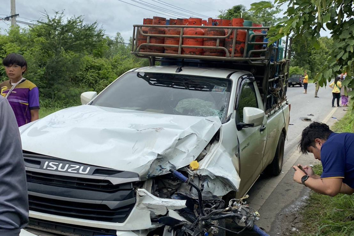 ที่เกิดเหตุพบรถยนต์กระบะยี่ห้ออีซูซุสีขาวหมายเลขทะเบียน บห xxx กาญจนบุรี แบบกั้นคอกบรรทุกถังแก๊สหุงต้มชนกับรถจักรยานยนต์ยี่ห้อฮอนด้าเวฟสีน้ำเงิน หมายเลขทะเบียน ขธขxx กาญจนบุรี สภาพรถทั้ง 2 คันคล้ายประสานงากัน ใกล้กันพบร่างผู้เสียชีวิตเป็นผู้ชายทราบชื่อตามบัตรประชาชนชื่อนายอรรถพล(ขอสงวนนามสกุล)อายุ 31 ปี อยู่บ้านเลขที่ 19/2 หมู 3 ต.รางสาลี่ อ.ท่าม่วง จ.กาญจนบุรี จึงมอบศพให้มูลนิธินำศพไปเก็บรักษาไว้ที่ รพ.ฯ เพื่อรอญาติมาติดต่อขอรับศพไปจัดการตามประเพณีทางศาสนา