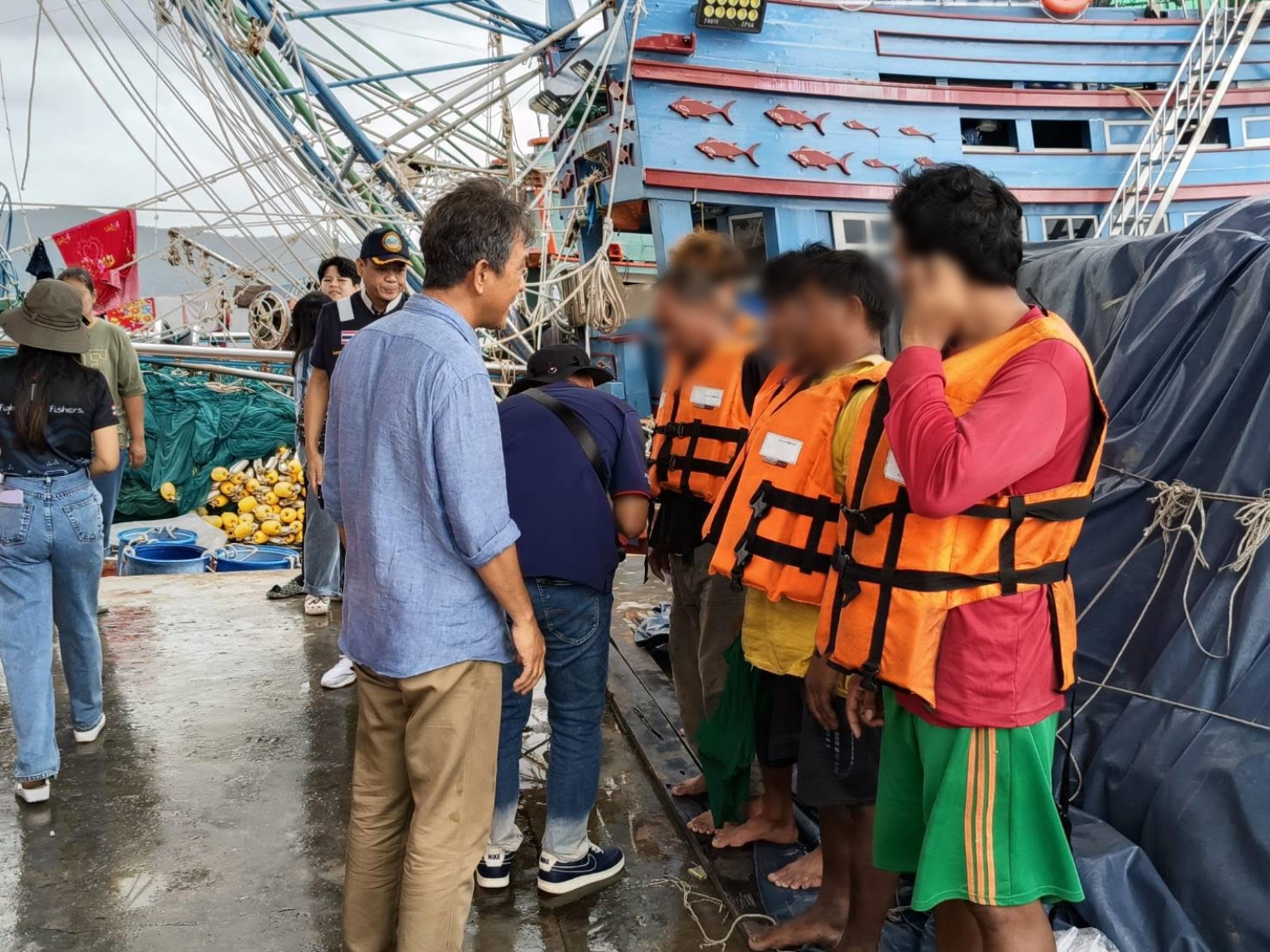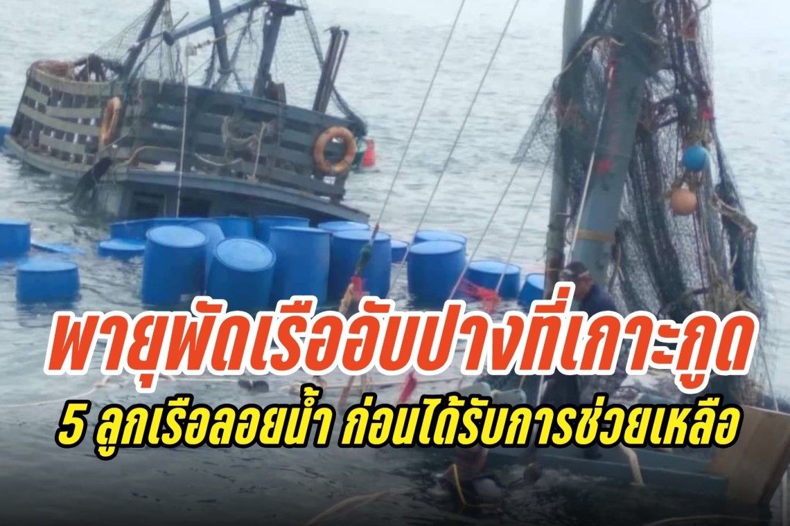 พายุพัดเรือประมงอับปางที่เกาะกูด 5 ลูกเรือลอยน้ำก่อนเรือประมงช่วยได้ นำเข้าท่าเรือชลาลัยปลอดภัย