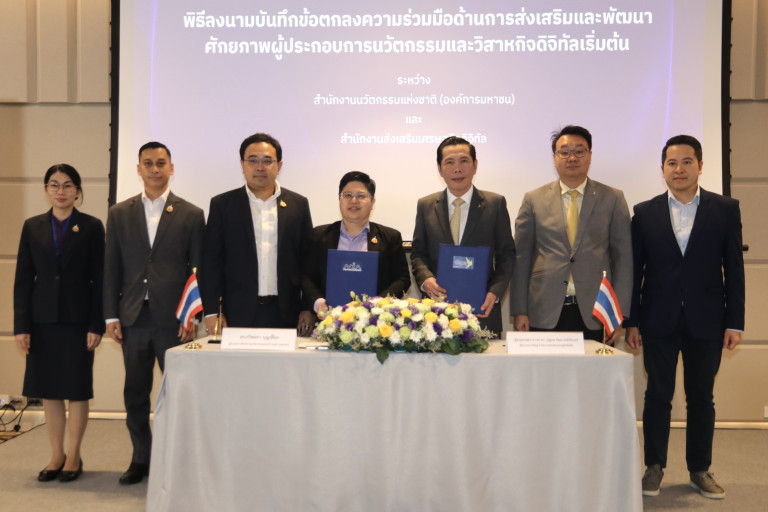 “นอกจากกิจกรรมไฮไลต์แล้ว NIA ในฐานะ “ผู้กำหนดทิศทางนวัตกรรม (Focal Conductor)” ยังได้เดินหน้าสร้างความร่วมมือกับเครือข่ายนวัตกรรมทั้งในและต่างประเทศ เพื่อยกระดับระบบนิเวศสตาร์ทอัพ และระบบนิเวศนวัตกรรมของไทยให้เข้มแข็ง และนำไปสู่การขับเคลื่อนประเทศไทยสู่ชาตินวัตกรรม โดยได้ลงนามบันทึกข้อตกลงและบันทึกความเข้าใจ ร่วมกับ 7 หน่วยงานที่มีพันธกิจครอบคลุมการดำเนินงานด้านนวัตกรรมในหลากหลายมิติ ทั้งการพัฒนาศักยภาพด้านนวัตกรรม การใช้ประโยชน์จากงานวิจัย และการพัฒนาย่านนวัตกรรม ดังนี้