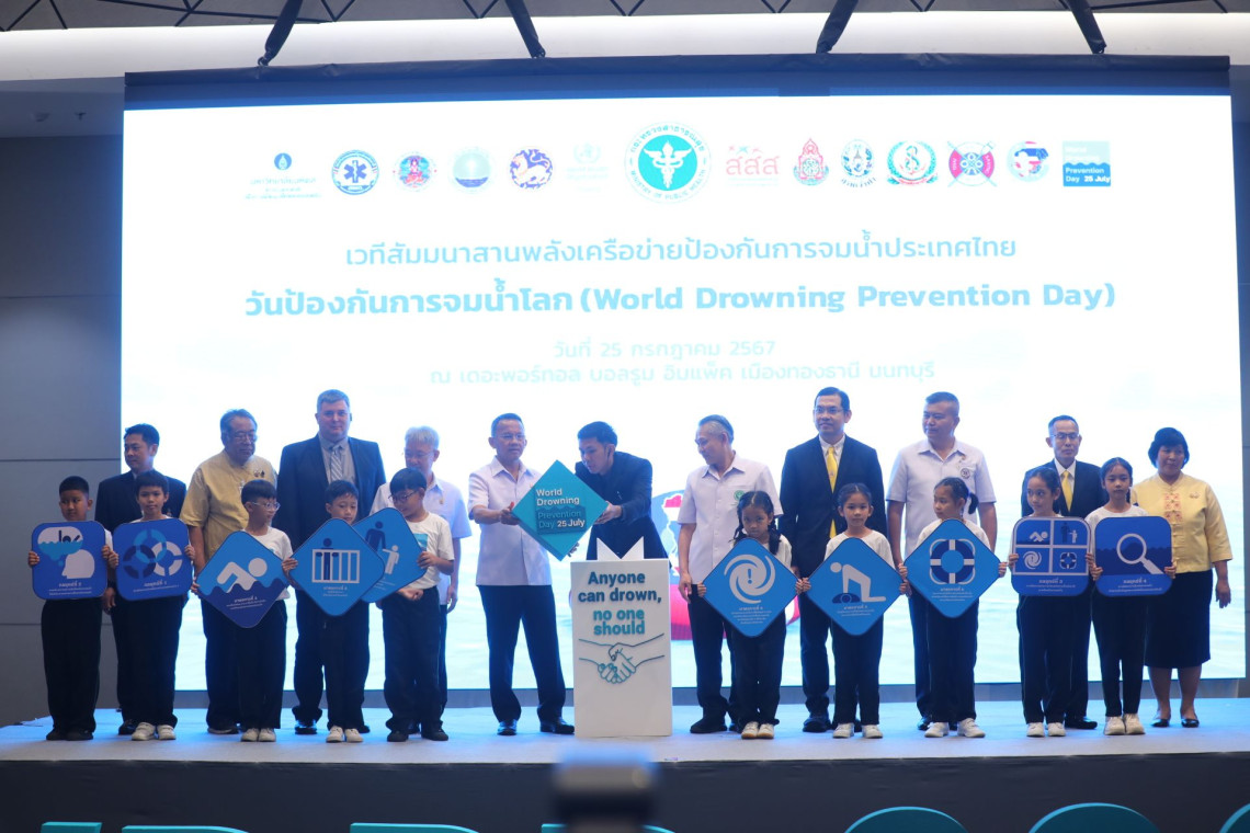 วันที่ 25 ก.ค.2567 นายสมศักดิ์ เทพสุทิน รมว.สาธารณสุข เป็นประธานพิธีเปิดเวทีสัมมนาสานพลังเครือข่ายป้องกันการจมน้ำประเทศไทย ในวันป้องกันการจมน้ำโลก (World Drowning Prevention Day: WDPD 2024) โดยมี นายแพทย์โอภาส การย์กวินพงศ์ ปลัดกระทรวงสาธารณสุข นายกิตติกร โล่ห์สุนทร เลขานุการรัฐมนตรีว่าการกระทรวงสาธารณสุข นายวิชัย ไชยมงคล ที่ปรึกษารัฐมนตรีว่าการกระทรวงสาธารณสุข นายกองตรี ธนกฤต จิตรอารีย์รัตน์ ผู้ช่วยรัฐมนตรีประจำกระทรวงสาธารณสุข นายแพทย์ธงชัย กีรติหัตถยากร อธิบดีกรมควบคุมโรค คุณมาร์ค แลนดรี ผู้แทนจากองค์การอนามัยโลกประจำประเทศไทย ดร.นพ.ไพโรจน์ เสาน่วม รองผู้จัดการสำนักงานกองทุนสนับสนุนการสร้างเสริมสุขภาพ และผู้บริหารทุกภาคส่วน เข้าร่วม ที่เดอะพอร์ทอล บอลรูม อิมแพ็ค เมืองทองธานี จังหวัดนนทบุรี