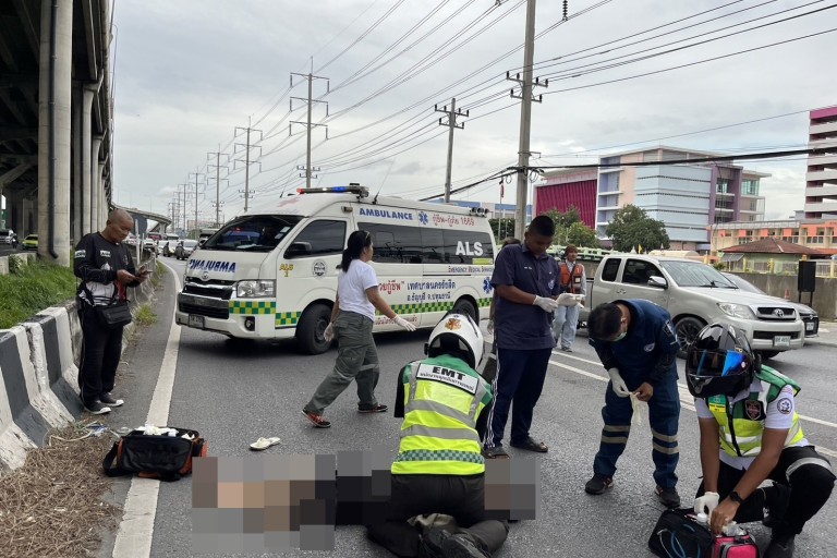 เมื่อเวลา 17.30 น. วันที่ 25 กรกฎาคม 2567 พ.ต.ท.ไพรรัตน์ วรรณี สารวัตรสอบ สภ.ประตูน้ำจุฬาลงกรณ์ ได้รับแจ้งเหตุ ชายกระโดดบนทางด่วนโทลเวย์ได้รับบาดเจ็บสาหัสเหตุเกิดบริเวณตรงข้ามโรงพยาบาลราชวิถีรังสิต 2 ตำบลประชาธิปัตย์ อำเภอธัญบุรี จังหวัดปทุมธานี จึงรายงานให้ผู้บังคับบัญชาทราบก่อนรุดไปตรวจสอบพร้อมกำลังเจ้าหน้าที่ อาสาสมัครมูลนิธิร่วมกตัญญู