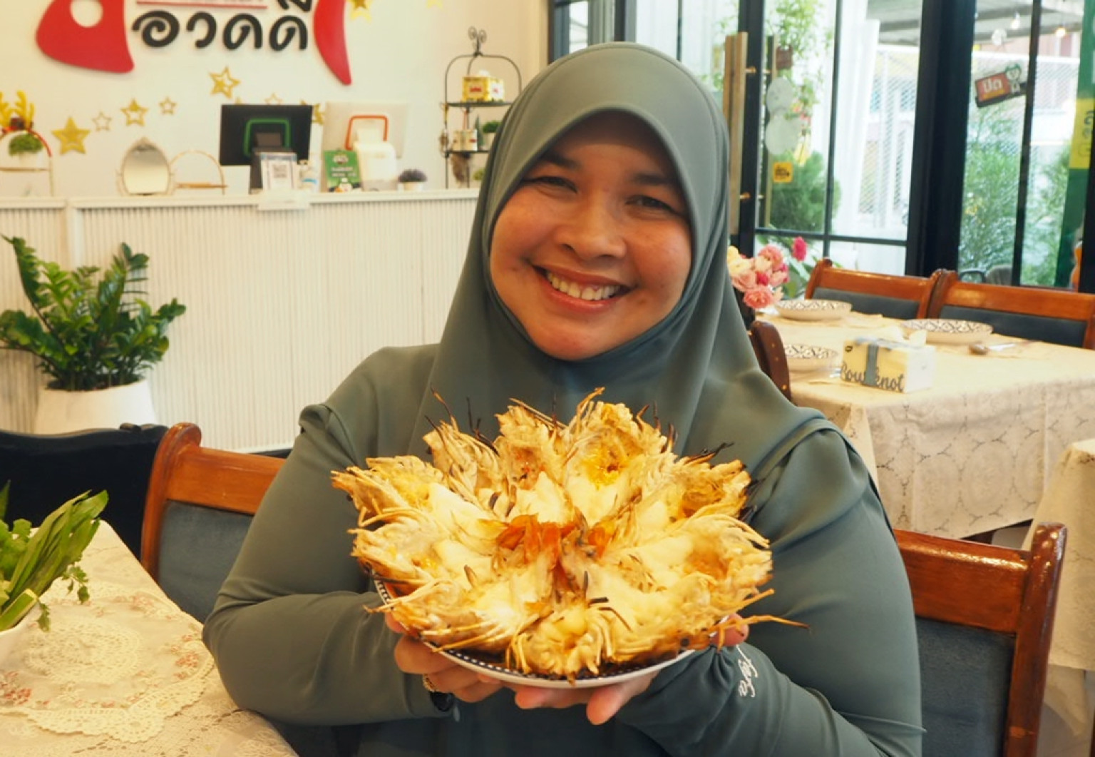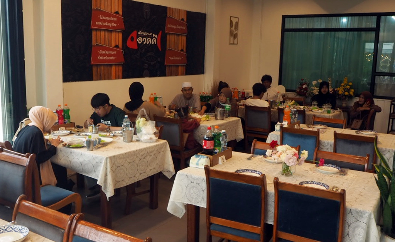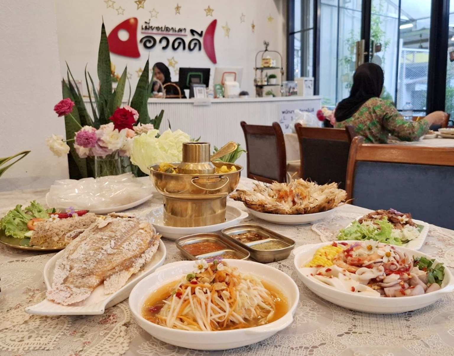 คุณ นูรฟายีร์ฮันน์ ตาเย๊ะ (เจ้าของร้าน)ให้สัมภาษณ์ว่า ร้านเราขายย่างก้าวปีที่6 พัฒนามาเรื่อยๆจากขายข้างทางสตีทฟู้ดธรรมดาเมื่อ5 ปีที่แล้ว และขยับมาที่ที่มีห้องแอร์เพื่อที่จะลูกค้าได้รับความสะดวกสบายยิ่งขึ้นแต่ราคาอาหารเท่าเดิมคุณภาพอาหารของเราก็เหมือนเดิมค่ะ และวันนี้เราจะแนะนำเมนูที่ตอบโจทย์ลูกค้า เมนูใหม่ๆของทางร้านเมนูที่ขายดีที่สุดก็คือ ไส้อ่อนย่าง สูตรหมักเป็นสูตรเองนะค่ะ ราคา150บาท กุ้งแม่น้ำบางนราเผา ราคา 199 บาทอิ่มคุ้มสำหรับครอบครัว และยำทะเลจานใหญ่นี้ 150บาท ส้มตำเมนูอีสานก็มา จากที่ลูกค้าขอมา เราก็เลยจัดไป และที่ขาดไม่ได้เมนู “ข้าวผัดปู” เมี่ยงปลาเผา ออเรสจินัลของทางร้านและที่เป็นกระแสคือ “แกงส้ม” ของเราเป็นของสูตรโบราณ ใส่ใบเกษมปลากะพง แต่ถ้าลูกค้าอยากใส่กุ้งหรือปลาอย่างอื่นก็สามารถสั่งได้ อร่อยตามสั่งค่ะ เชิญมาอุดหนุนกัน มาติมาชมเพื่อการพัฒนาของร้านเราต่อไปค่ะ