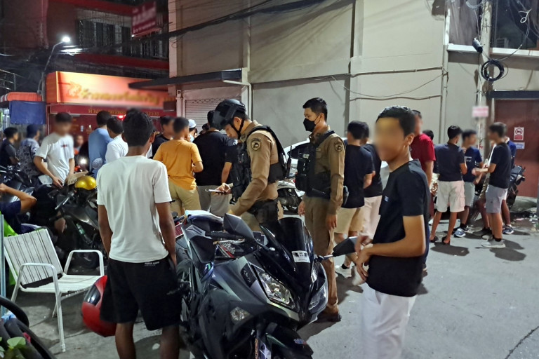 เมื่อเวลา 04.50 น. วันที่ 26 ก.ค.67 เจ้าหน้าที่ตำรวจสายตรวจเขต กว่า 10 นาย นำกำลัง ตั้งจุดสกัดป้องปรามกลุ่มชาวต่างชาติ ที่ชอบขี่รถจักรยานยนต์ วนไปวนมา และบีบแตร เร่งเครื่องส่งเสียงดัง สร้างความเดือดร้อนรำคาญให้กับชาวบ้าน โดยได้นำกำลังไปดักปากซอยและท้ายซอย วีซี พัทยาใต้ ม. 10 ต.หนองปรือ อ.บางละมุง จ.ชลบุรี พร้อมเรียกตรวจสอบกลุ่มชาวต่างชาติที่ขับขี่รถ จักรยานยนต์ ภายในซอย วีซี ซึ่งมีจำนวน กว่า 50 คน ทันทีที่เห็นเจ้าหน้าที่ตำรวจ บางรายได้เลี้ยวรถกลับเล็ดลอดการจับกุมของเจ้าหน้าที่ไปหลายราย ส่วนบางรายที่หลบหนีไม่พ้นได้ถูกเจ้าหน้าที่ ตรวจสอบเอกสาร ซึ่งพบว่าส่วนใหญ่เป็นรถ จยย. เช่า บางคันดัดแปลงท่อไอเสียจนเสียงดังสร้างความรำคาญ ให้กับชาวบ้านในละแวกนี้ เจ้าหน้าที่ตำรวจ ได้ตรวจยึดรถ จยย. ของกลุ่มชาวต่างชาติไปกว่า 10 คัน และนำรถไปเก็บรักษาไว้ เพื่อรอเจ้าของรถ นำเอกสารมาขอรับรถคืน และเปรียบเทียบปรับ ตาม พ.ร.บ.จราจรต่อไป