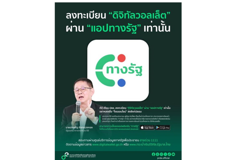 "ดีอี" เตือนลงทะเบียนดิจิทัลวอลเล็ตผ่านแอปทางรัฐเท่านั้น อย่าหลงเชื่อโจรออนไลน์ส่งลิงก์ปลอม