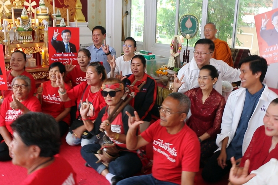 วันที่ 26 ก.ค.67 ที่วัดเจติยภูมิ (วัดพระธาตุขามแก่น) อ.น้ำพอง จ.ขอนแก่น ผศ.ดร.พรรณวดี ตันติศิรินทร์ ที่ปรึกษาเครือข่ายกลุ่มสตรี 20 จังหวัดภาคอีสานและอดีตแกนนำคนเสื้อแดงและ แนวร่วม นปช.ขอนแก่น พร้อมด้วย นายวิฑิต ทองโสภิต อดีตนายกเทศมนตรีตำบลเมืองเก่า อ.เมือง จ.ขอนแก่น และ นายนพพร ปิติสุวรรณรัตน์ ส.อบจ.อ.น้ำพอง เขต 2 นำแกนนำคนเสื้อในหลายจังหวัดของภาคอีสานร่วมทำบุญเนื่องในวันคล้ายวันเกิดของนายทักษิณ ชินวัตร อดีตนายกรัฐมนตรี ด้วยการถวายจัตตุปัจจัยไทยทาน ถวายภัตราหารเพล ถวายน้ำดื่ม และถวายบั้งไฟ 90 นัด แด่พระครูสุตธรรมภาณี,ผศ.ดร. เจ้าอาวาสวัดเจติยภูมิ โดยมีการนำภาพของนายทักษิณ นายกในดวงใจ มาวางไว้ในพื้นที่สำหรับการประกอบพิธีสงฆ์ดังกล่าวด้วย