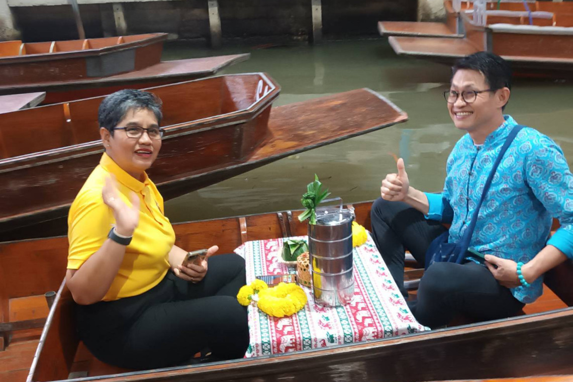 ผู้ประกอบการชุมชนตลาดน้ำดำเนินสะดวก จ.ราชบุรี จับมือ ม.ราชภัฏหมู่บ้านจอมบึงจัดกิจกรรม พัฒนาเส้นทางท่องเที่ยวทางเลือกใหม่ วิถีไทย วิถีคลองเชิงสร้างสรรค์ จัดทริปพาล่องเรือยามเย็น ชิมอาหารโบราณ ลอยกระทงกาบกล้วย ร่วมลดภาวะโลกร้อน