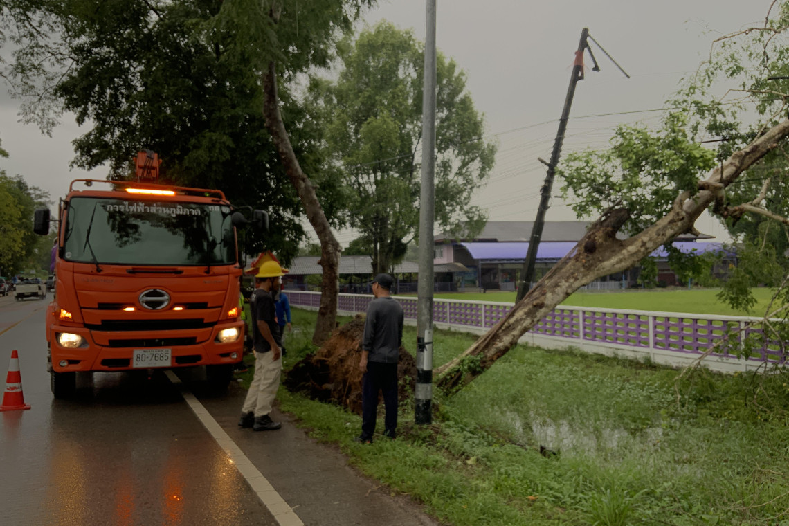 เจ้าหน้าที่ไฟฟ้าตราดที่ระดมคน และกำลังเครื่องจักรมาช่วยตัดต้นไม้ที่ล้มทับ และทำให้เสาหัก ต้องใช้เวลานานในการแก้ไข เนื่องจากเกิดขึ้นกว่า 20 -30 จุดพร้อมกัน ตลอดแนวเส้นทาง
