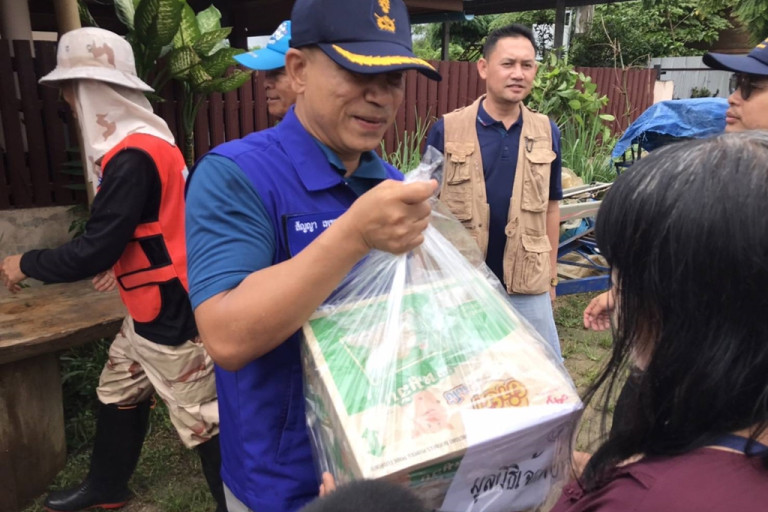 พร้อมกันนี้ ได้มอบถุงยังชีพ เพื่อบรรเทาความเดือดร้อน และเป็นขวัญและกำลังใจให้ผู้ประสบภัย ที่บ้านท่าอาจ หมู่ 3. ต.ท่าสายลวด อ.แม่สอด จ.ตาก