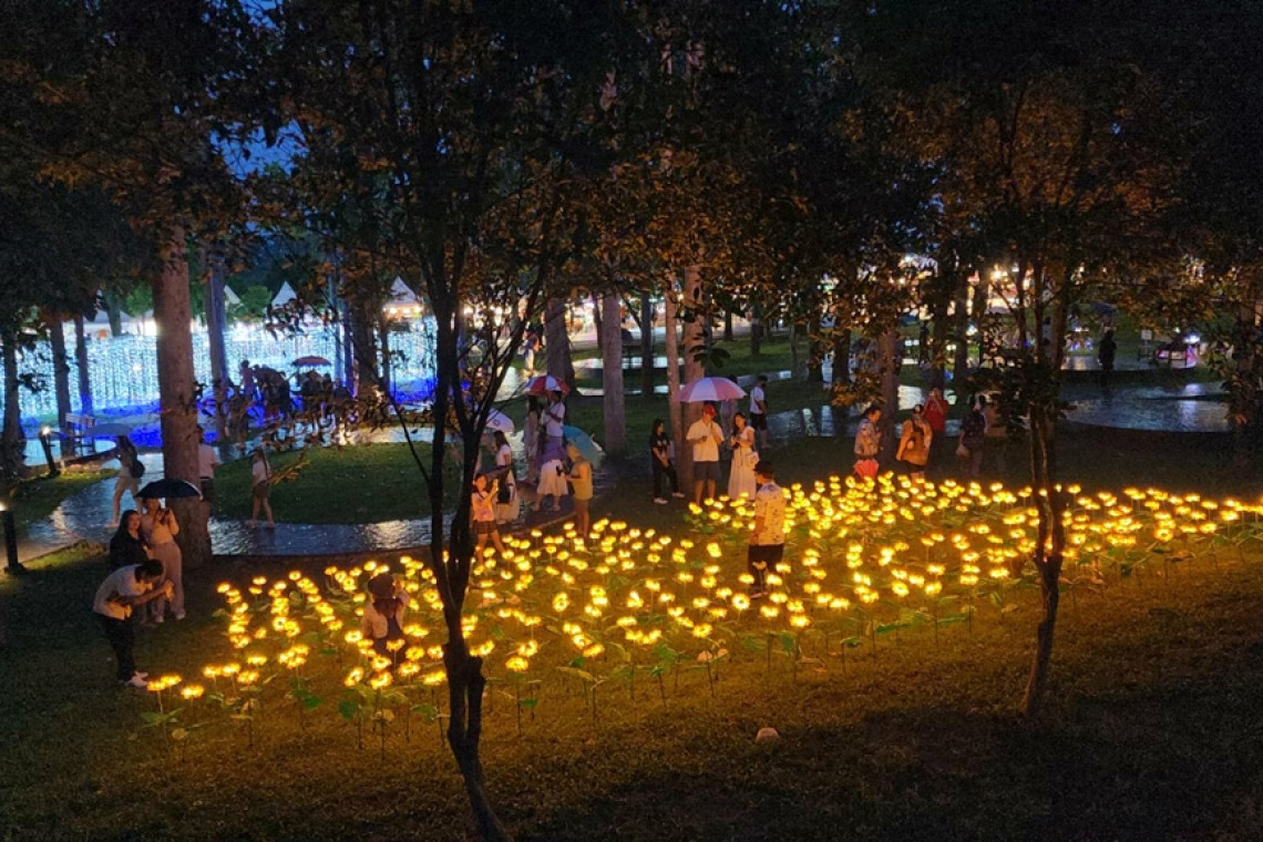 โดยในวันแรกของการจัดงานได้มีการแสดงโชว์ กลองสะบัดชัย และโชว์แสงไฟในสวน มี 7 ชุดด้วยกัน ประกอบด้วย ชุดเรืองแสง เรืองสี ชุดสวนผีเสื้อ ชุดประกายดาว ชุด Sunflower after the sunset ชุดเกษตรสมบูรณ์ ชุด street off colorful และชุด aqua imagination รวมทั้งการแสดงศิลปวัฒนธรรม การแสดงดนตรีทุกค่ำคืน การจำหน่ายอาหาร และเครื่องดื่มที่หลากหลายจำนวนมากด้วย นอกจากนี้ยังจะมีการจัดจุดเทียนชัยถวายพระพรชัยมงคล และจุดพลุเทิดพระเกียรติพระบาทสมเด็จพระเจ้าอยู่หัว เนื่องในโอกาสพระราชพิธีมหามงคลเฉลิมพระชนมพรรษา 6 รอบ 28 กรกฎาคม 2567 และเพื่อเป็นการแสดงออกถึงความจงรักภักดีและเทิดทูนสถาบันพระมหากษัตริย์ รวมทั้งการจัดงานดังกล่าวยังเป็นการส่งเสริมการท่องเที่ยว สร้างรายได้ให้ชุมชนอีกด้วย