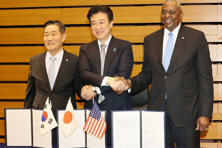 สำนักข่าวต่างประเทศรายงานว่า รัฐมนตรีว่าการกระทรวงกลาโหม 3 ประเทศ ได้แก่ สหรัฐฯ ญี่ปุ่น และเกาหลีใต้ ได้ลงนามในบันทึกความเข้าใจร่วมกัน หรือเอ็มโอยู เมื่อวันอาทิตย์นี้ หลังการประชุมหารือที่กรุงโตเกียว เมืองหลวงของญี่ปุ่น เมื่อช่วงสุดสัปดาห์ที่ผ่านมา เพื่อกระชับความร่วมมือด้านความมั่นคงระดับไตรภาคี โดยมีวัตถุประสงค์เพื่อต่อต้านภัยคุกคามจากอาวุธนิวเคลียร์และขีปนาวุธของเกาหลีเหนือ รวมถึงอิทธิพลของจีนที่ขยายตัวมากขึ้นในภูมิภาค