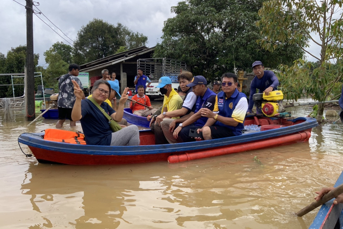 ซึ่งระหว่างทางมีทั้งลมและมีฝนตกต่อเนื่องทั้งหนักและเบา ซึ่งประชาลนที่ประสบภัยทางขอบคุณคณะของนายอำเภอเขาสมิงที่เดินทางมามอบให้ พร้อมแจ้งให้ผู้รับผิดชอบได้แก้ปัญหาการระบายน้ำที่คลองฉลุงที่มีความคับแคบซึ่งเมื่อมีฝนตกลงมาแล้วระบายได้ช้าส่งผลให้เกิดน้ำท่วมทุกปี เนื่องน้ำระบายไม่ทัน