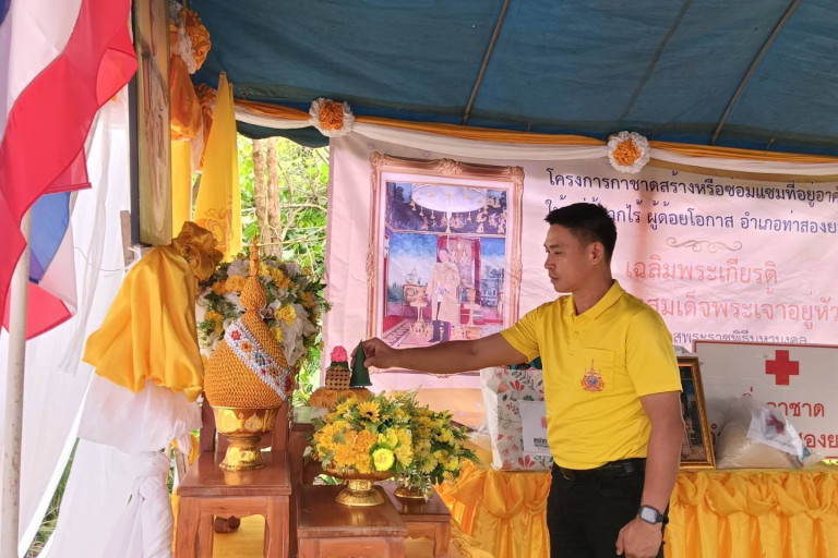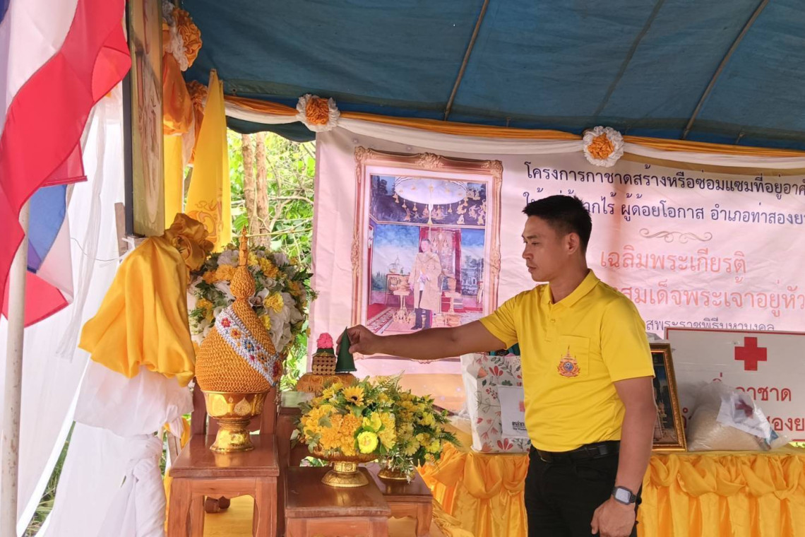 เมื่อวันที่ 28 กรกฎาคม 2567 นายอัครพันธุ์ พูลศิริ นายอำเภอท่าสองยาง จังหวัดตาก ประธานในพิธีมอบบ้านผู้ยากไร้ ผู้ด้อยโอกาส " ตามโครงการกาชาดสร้างหรือซ่อมแซมที่อยู่อาศัยให้แก่ผู้ยากไร้ ผู้ด้อยโอกาส เฉลิมพระเกียรติพระบาทสมเด็จพระเจ้าอยู่หัว เนื่องในโอกาสพระราชพิธีมหามงคล เฉลิมพระชนมพรรษา 6 รอบ 28 กรกฎาคม 2567" โดยเป็นตัวแทนเหล่ากาชาดจังหวัดตาก มอบ เครื่องอุปโภค บริโภค พัดลม ชุดเครื่องครัว หม้อหม้อสแตนเลส นาฬิกา ชุดธารน้ำใจจาก กาชาดเทพรัตน์ พระบรมฉายาลักษณ์พระบาทสมเด็จพระเจ้าอยู่หัวที่ฉายกับสมเด็จพระนางเจ้า ฯ พระบรมราชินี