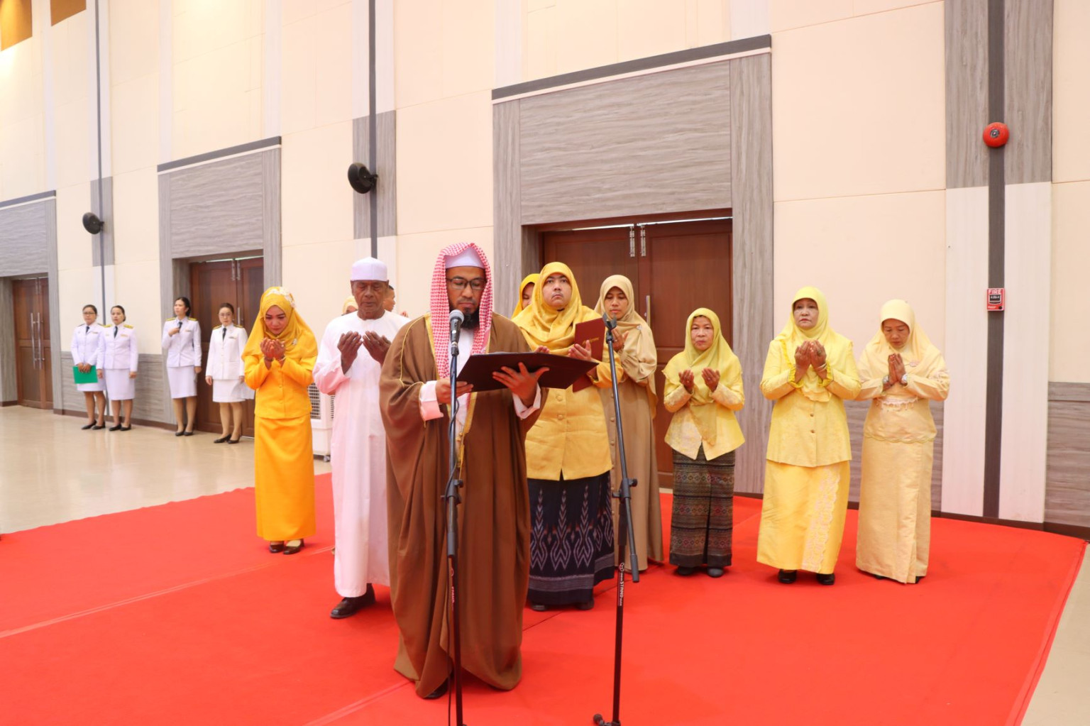 โดยมี นายสุรศักดิ์ อักษรกุล รอง ผวจ.อุดรธานี รอง ผวจ.อุดรธานี ประธานในพิธี ฯ นางนงรัตน์ คงเกษม นายกเหล่ากาชาด จ.อุดรธานี / ประธานแม่บ้านมหาดไทย จ.อุดรธานี นายณัฐพงศ์ คำวงศ์ปิน รอง ผวจ.อุดรธานี นายณฐพล วิถี รอง ผวจ.อุดรธานี หัวหน้าส่วนราชการ ข้าราชการตุลาการ พลเรือน ทหาร ตำรวจ ผู้นำศาสนาอิสลาม(ประกอบพิธีดุอาร์ขอพร) ผู้นำศาสนาคริสต์ นิกายโรมันคาทอลิก/นิกายโปรแตสแตนท์ และประชาชนชาว จ.อุดรธานี (ประกอบพิธีอธิษฐานภาวนาขอพร) ร่วมพิธีฯ