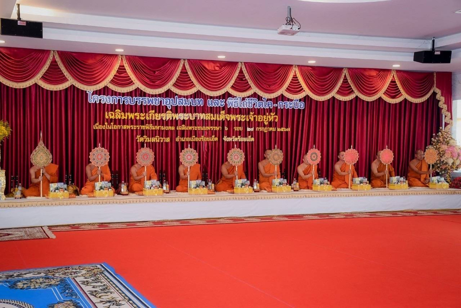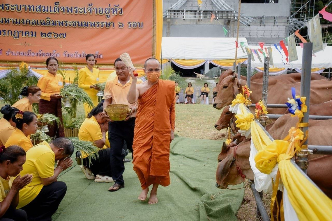 วันที่ 28 กรกฎาคม 2567 เวลา 14.00 น. ที่ วัดวิมลนิวาส ตำบลเหนือเมือง อำเภอเมืองร้อยเอ็ด จังหวัดร้อยเอ็ด นายชัยวัฒน์ ชัยเวษพิสิฐ รองผู้ว่าราชการจังหวัดร้อยเอ็ด พร้อมด้วย หัวหน้าส่วนราชการ และประชาชน ร่วมพิธีไถ่ชีวิตโคกระบือ เพื่อเฉลิมพระเกียรติพระบาทสมเด็จพระปรเมนทรรามาธิบดีหรีสินทรามหาวชิรเกล้าเจ้าอยู่หัว เนื่องในโอกาสมหามงคลเฉลิมพระชนมพรรษาครบ 6 รอบ 28 กรกฎาคม 2567 ซึ่งมูลนิธิบุญโกศลวัดวิมลนิวาส ได้ไถ่ชีวิตโคกระบือ จำนวน 28 โดยมี พระครูวิมล บุญโกศล เจ้าอาวาสวัดวิมลนิวาส ประธานมูลนิธิวิมลบุญโกศล เป็นประธานฝ่ายสงฆ์