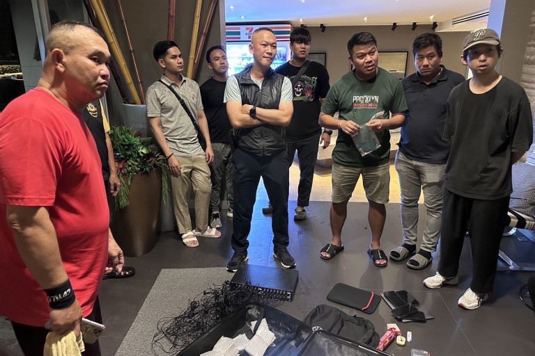 ต่อมาวันที่ 29 ก.ค.67 เวลาประมาณ 23.15 น. พบกลุ่มบุคคล จำนวน 3 คน โดยสารด้วยรถยนต์ MAZDA สีแดง หมายเลขทะเบียน 6กภ-6850 กทม.มาจอดบริเวณด้านหน้าคอนโดที่เกิดเหตุและมีผู้ชาย 1 คนเดินลงจากรถยนต์และเดินเข้าไปที่ตึก A และขึ้นไปด้านบน เจ้าหน้าตำรวจ บก.สส.ภ.2 จึงได้เฝ้ารอจนกระทั่งคนดังกล่าวเดินออกมาจากลิฟท์พร้อมกระเป้าเดินทาง 1 ใบ จึงได้แสดงตัวทำการตรวจค้นพบของกลางพร้อมกับมีพวกรอที่รถยนต์บริเวณหน้าคอนโดอีก 2 คน เจ้าหน้าที่ตำรวจจึงได้สอบถามทั้ง 3 คน รับว่าที่ห้องพักหมายเลข 678/183 ตึกหรือ GSM GATEWAY อีก 2 เครื่อง อยู่ภายในห้อง จึงได้ร่วมกันทำการตรวจค้นและพบของกลางทั้งหมด