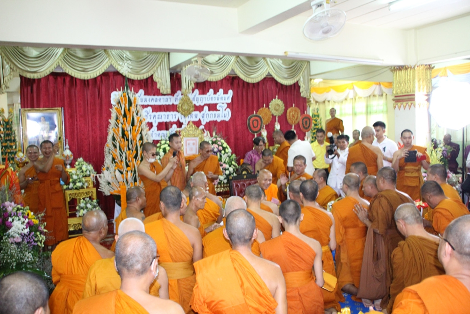 พระสงฆ์อนุโมทนา รองเจ้าคณะจังหวัด เจ้าคณะอำเภอ รองเจ้าคณะอำเภอ เขตปกครองจังหวัดร้อยเอ็ด และผู้ว่าราชการจังหวัดร้อยเอ็ด และหัวหน้าส่วนราชการ เข้าถวายมุทิตาสักการะ คณะสงฆ์และพุทธศาสนิกชน เข้าถวายมุทิตาสักการะ เป็นเสร็จพิธี