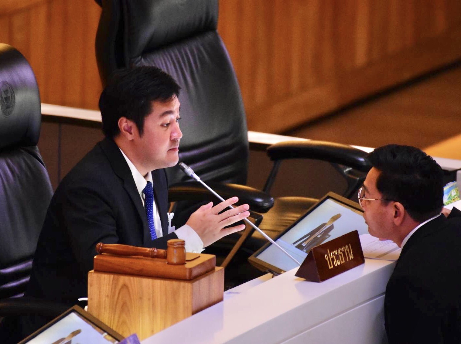 “ต่อให้เปิดลงทะเบียน แต่ยังไม่ส่งมอบเงิน ก็ต้องถือว่าสัญญาไม่สมบูรณ์ ฟ้องต่อศาลไม่ได้ ขณะเดียวกัน ถ้ากระทรวงคลังยืนยันว่าเป็นหนี้จริงๆ ถ้ารัฐบาลแจกไม่ทันในไตรมาสหนึ่งของงบ 2568 แปลว่าผิดนัดชำระหนี้ ประชาชนมีสิทธิ์ฟ้องร้องให้จ่ายเงิน 1 หมื่นบาทแก่ตนเองใช่หรือไม่ ทั้งนี้ หากในอนาคตมีปัญหาเรื่องใช้จ่ายงบประมาณ ผู้เกี่ยวข้องอ้างไม่รู้ในประเด็นกฎหมายเหล่านี้ไม่ได้” กมธ.ก้าวไกล กล่าว