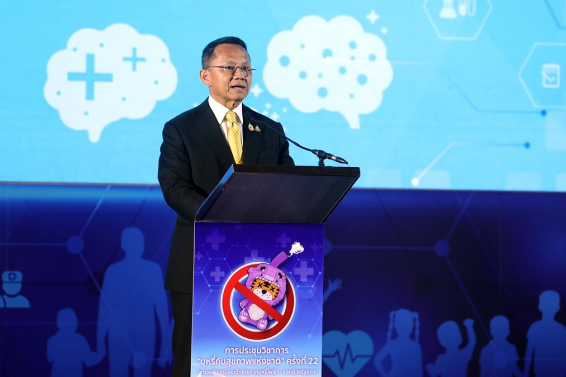 “ผมมีความยินดีและรู้สึกเป็นเกียรติอย่างยิ่ง ที่ได้มาเป็นประธาน ในพิธีเปิดการประชุมวิชาการบุหรี่กับสุขภาพแห่งชาติ ครั้งที่ 22 เรื่อง “สานพลังปกป้องเด็กไทยจากบุหรี่ไฟฟ้า รอดด้วยรัฐสภา”ในวันนี้ โดยเวทีนี้ จะเป็นเวทีให้ผู้ที่มีส่วนเกี่ยวข้อง ทุกภาคส่วน ได้แลกเปลี่ยนองค์ความรู้ แบ่งปันประสบการณ์ ร่วมหาแนวทางในการป้องกัน และแก้ปัญหาบุหรี่ไฟฟ้าของประเทศ ซึ่งทุกภาคส่วนคือกำลังสำคัญ ที่จะต้องสานพลังร่วมกัน ทั้งพลังสภาฯ กฎหมาย การแพทย์ วิจัย การศึกษา จังหวัด ชุมชน ครอบครัว เยาวชน และสื่อมวลชน โดยผมขอขอบคุณ ศูนย์วิจัยและจัดการความรู้เพื่อการควบคุมยาสูบ ที่เล็งเห็นถึงความสำคัญ และได้ร่วมกันระดมความคิดเห็น เพื่ออนาคตของเด็กไทยของเรา” รมว.สาธารณสุข กล่าว