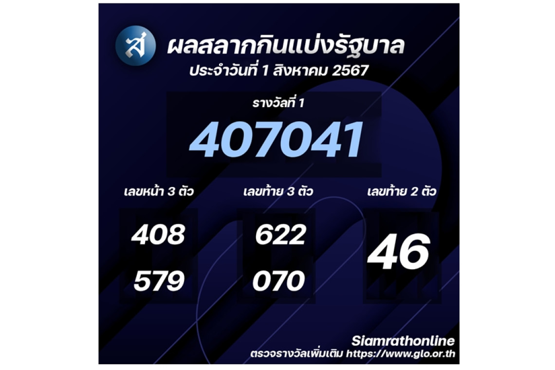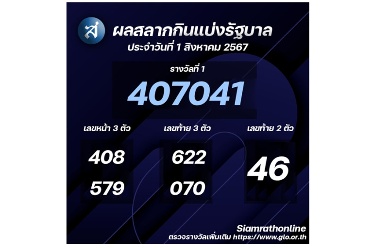 ผลสลากกินแบ่งรัฐบาลงวดประจำวันที่ 1 สิงหาคม 2567