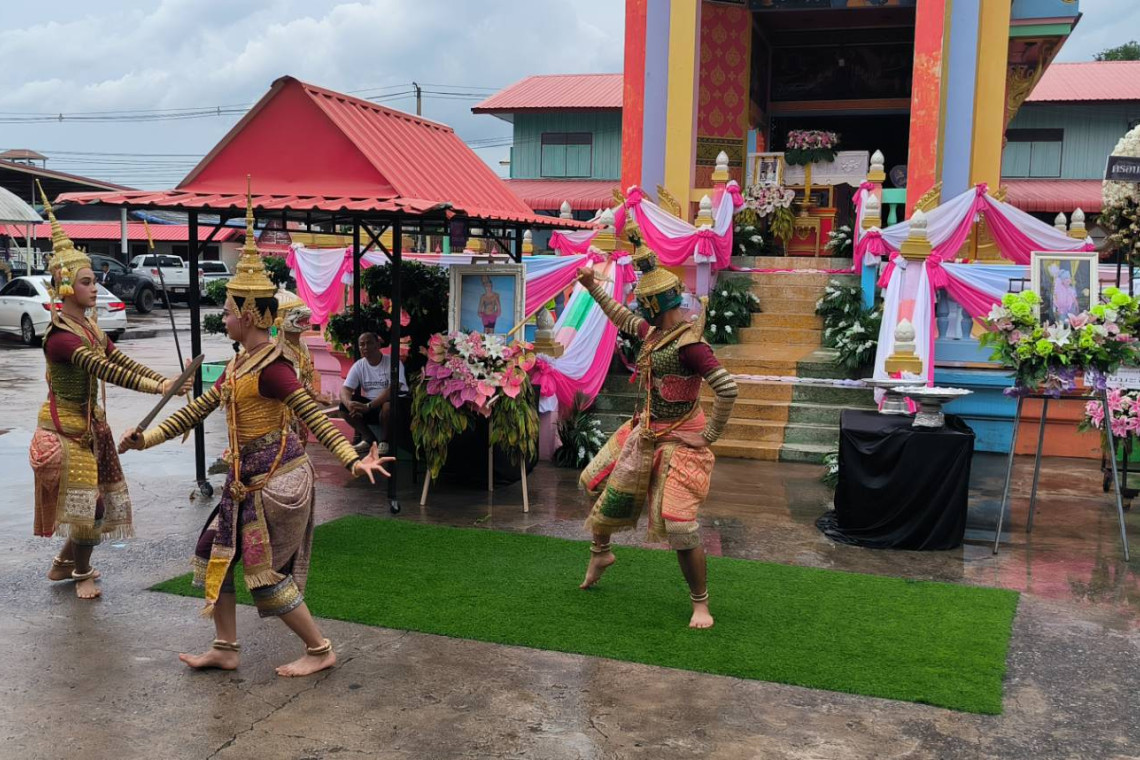 เมื่อเวลา 16.00 น. วันที่ 1 สิงหาคม เมรุวัดหนองจะบก อ.เมือง จ.นครราชสีมา นายสุพจน์ แสนมี นายอำเภอเมือง นครราชสีมา เป็นประธานทอดผ้าบังสุกุลในพิธีประชุมเพลิงนายรุ่งเกียรติ์ วิทยาบำรุง อายุ 58 ปี “พระเอกจ๊ะเอ๋” เจ้าของคณะลิเกจ๊ะเอ๋ “พระเอกลูกคนยาก” ชื่อดังเมืองโคราช ประสบอุบัติเหตุเสียชีวิต พบศิลปินลิเกหลากหลายสถานะ บรรดาแม่ยก แฟนคลับและผู้ที่รู้จักมักคุ้นเดินทางมาร่วมแสดงความอาลัยเป็นครั้งสุดท้าย โดยมีการแสดงโขนหน้าเมรุก่อนฌาปนกิจและการแสดงภาคกลางคืนมหรสพลิเก