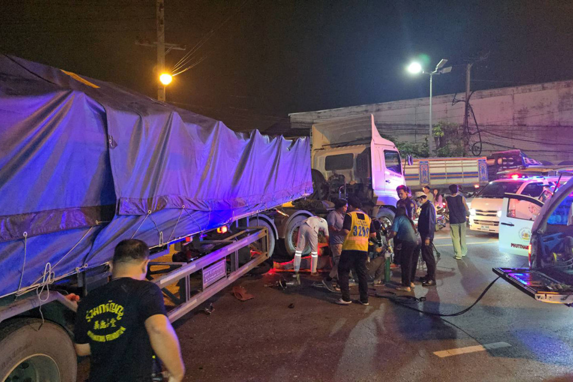 เมื่อเวลา 22.30 น. วันที่ 1 สิงหาคม 2567 พ.ต.ท.บุญฤทธิ์ เชิญเชื้อ สารวัตรสอบสวน สภ.สำโรงใต้ จ.สมุทรปราการ ได้รับแจ้งมีอุบัติเหตุรถจักรยานยนต์พุ่งชนรถพ่วง ผู้ได้รับบาดเจ็บ บริเวณหน้าบริษัท สามชัยสตีล อินดัสทรี จำกัด ถนนปู่เจ้าสมิงพราย ต.บางหญ้าแพรก อ.พระประแดง จ.สมุทรปราการ หลังรับแจ้งจึงพร้อมด้วยเจ้าหน้าที่มูลนิธิร่วมกตัญญูเดินทางตรวจสอบที่เกิดเหตุ