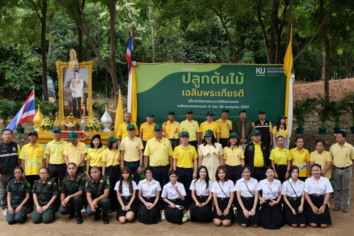 มหาวิทยาลัยเกษตรศาสตร์ วิทยาเขตศรีราชา จัดกิจกรรมปลูกป่าเฉลิมพระเกียรติพระบาทสมเด็จพระเจ้าอยู่หัว เนื่องในโอกาสมหามงคลเฉลิมพระชนมพรรษา ครบ 6 รอบ 72 พรรษา ณ บริเวณเขาน้ำซับ วิทยาเขตศรีราชา ในการนี้นายนพรัตน์ ศรีพรหม นายอำเภอศรีราชา เป็นประธานในพิธี โดยมี ดร.วรยศ ละม้ายศรี ผู้ช่วยอธิการบดีฝ่ายบริหารทรัพย์สินและนวัตกรรมเพื่อความยั่งยืน วิทยาเขตศรีราชา เป็นผู้แทนรองอธิการบดีวิทยาเขตศรีราชา พร้อมด้วยคณะผู้บริหารมหาวิทยาลัย ได้แก่ ผศ.ดร.ดาราพร ผุสิงห์ ผู้ช่วยอธิการบดีฝ่ายเทคโนโลยีสารสนเทศ กายภาพและสิ่งแวดล้อม วิทยาเขตศรีราชา ผศ.น.สพ.ดร. เสรี กุญแจนาค อดีตรองอธิการบดีวิทยาเขตศรีราชา คณบดี คณาจารย์ บุคลากร และนิสิต มหาวิทยาลัย เกษตรศาสตร์ วิทยาเขตศรีราชา พร้อมด้วย นายสันติ ศิริตันหยง รองนายกเทศมนตรีนครแหลมฉบัง ผู้บริหารและบุคลากรบริษัท ฮัทชิสัน พอร์ท (ประเทศไทย) จํากัด และชุมชนรอบมหาวิทยาลัย โดยทุกคนพร้อมใจกันสวมใส่เสื้อเหลืองตราสัญลักษณ์ 72 พรรษา เข้าร่วมกิจกรรมจำนวนประมาณ 664 คน