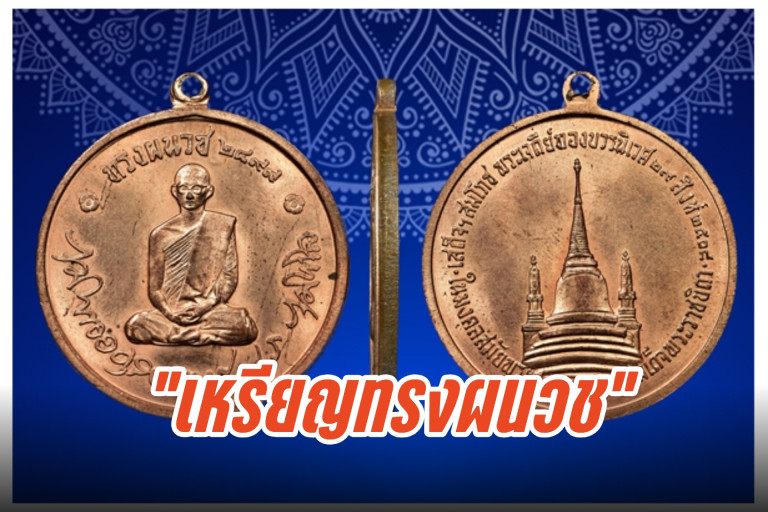 "เหรียญทรงผนวช" เหรียญที่ระลึกในพระบาทสมเด็จพระเจ้าอยู่หัว อันทรงคุณค่าและได้รับความนิยมอย่างสูง ทางวัดบวรนิเวศวิหารได้ขอพระบรมราชานุญาตสร้างเหรียญพระบรมรูปทรงผนวช ซึ่งมีพระเจดีย์อยู่อีกด้านหนึ่ง เพื่อเป็นอนุสรณ์ในงานจาตุรงคมงคลนี้ เหรียญที่สร้างขึ้นนี้มีรูปกลมขนาดเท่าเหรียญบาท ด้านที่มีพระบรมรูปทรงผนวช มีพระปรมาภิไธย ซึ่งเป็นลายพระหัตถเลขาทรง ไว้ในสมุดทะเบียนวัดว่า "ภูมิพลอดุลยเดช ป.ร.ภูมิพโล" อยู่ภายใต้พระบรมรูป (ถ่ายทำจากลายพระหัตถ์ตามจริง) เบื้องบนมีอักษรว่า "ทรงผนวช 2499" ส่วนอีกด้านหนึ่งมีรูปพระเจดีย์มีรูปพระเจดีย์วัดบวรนิเวศวิหาร มีอักษรเป็นวงกลมที่ขอบเหรียญว่า"เสด็จฯ สมโภชพระเจดีย์ทองบวรนิเวศ 29 สิงห์ 2508 ในมงคลสมัย พระชนมายุเสมอสมเด็จพระราชบิดา..."